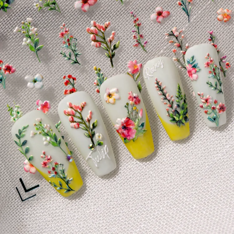 Wholesale Cute Sweet 3D Print Flower Petal Nail Stickers Nail Decoration Accessories