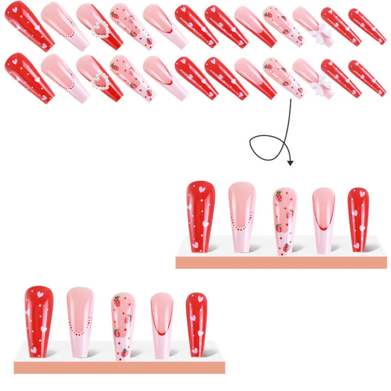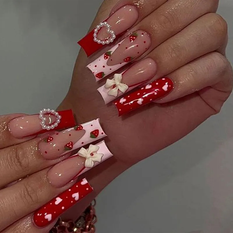 Wholesale Cute Sweet Heart Shape Strawberry Bow Knot Plastic Nail Patches