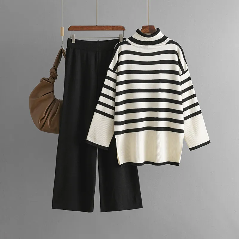 Wholesale Daily Women's Casual Stripe Viscose fiber Slit Pants Sets Pants Sets