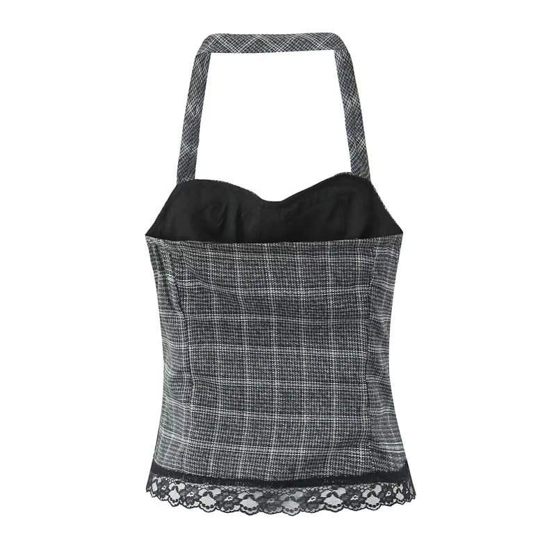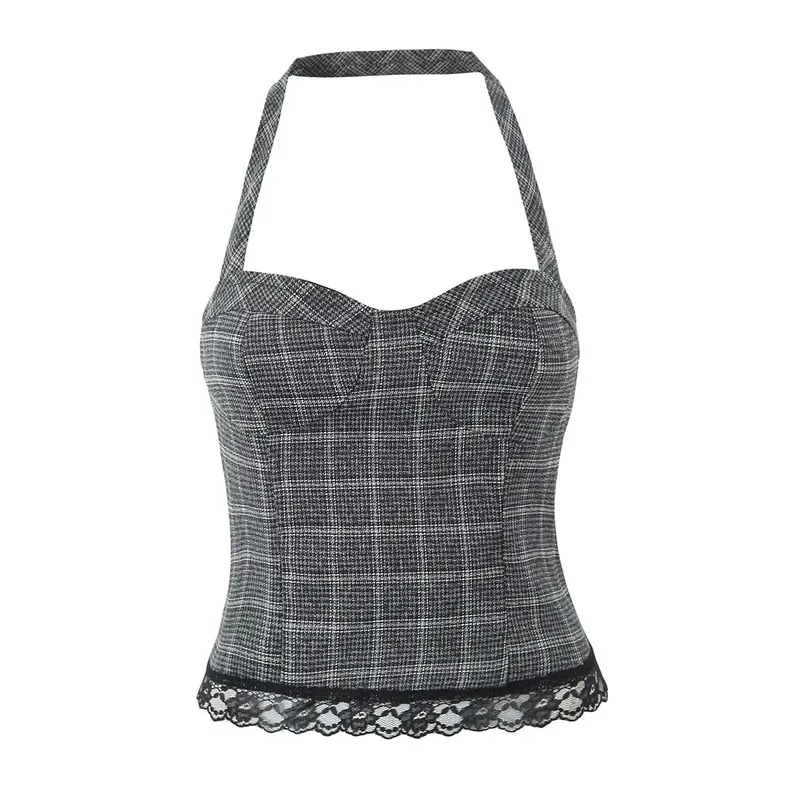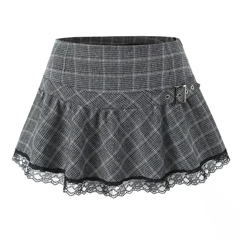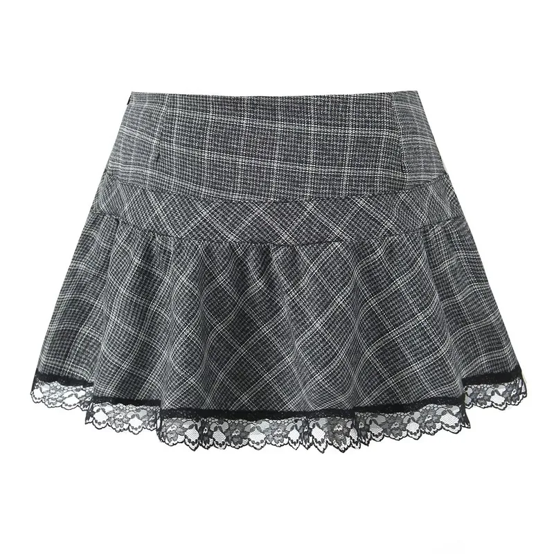 Wholesale Daily Women's Sexy Plaid Polyester Lace Skirt Sets Shorts Sets