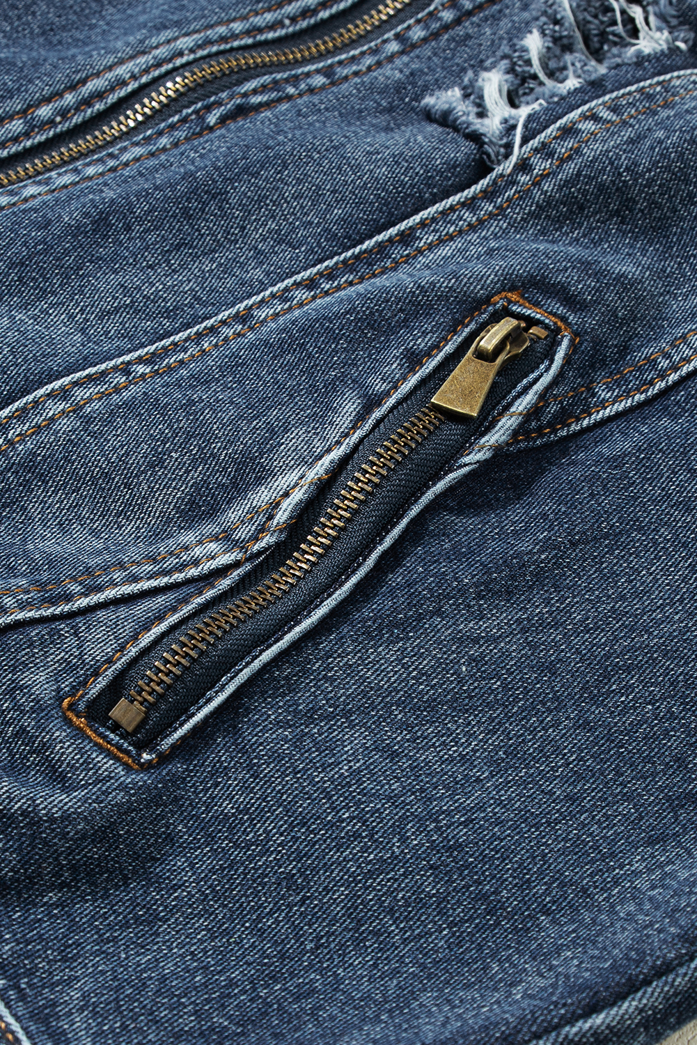 Dark Blue Fake Two-Piece Hooded Zip-Up Denim Jacket
