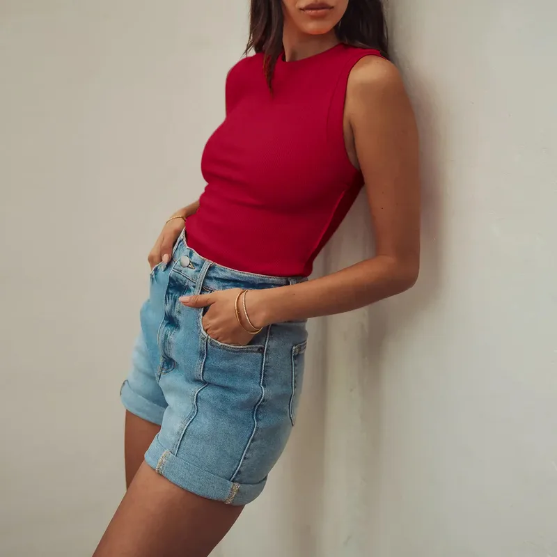 Designed Spring And Summer New Explosions Y2K Solid Color Slim Fit Thread Sleeveless Outer Wear Vest Top Women