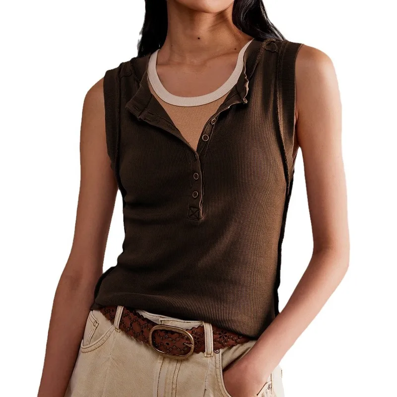 Wholesale designed Spring and Summer Y2K Women's Sleeveless Button Threaded Casual Top Slim-fit All-match High-end Vest for Women
