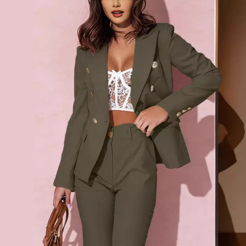 Designed Wish Explosions Spring Best Selling Long Sleeve Double-breasted Solid Color Stand Collar Small Suit