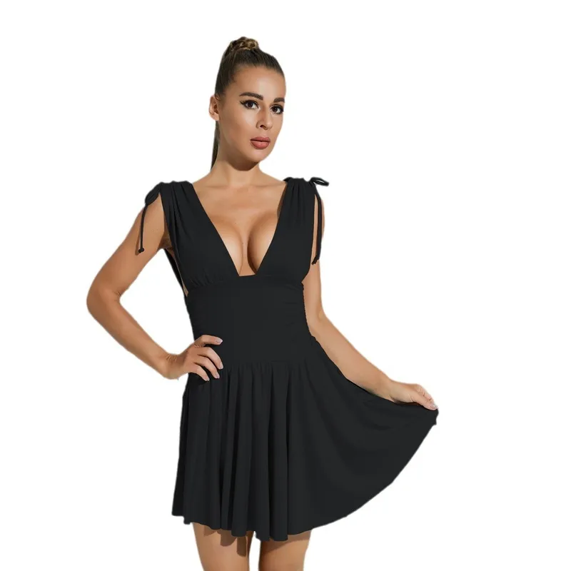 Wholesale designed Women's Clothing New Summer Sleeveless Sexy Deep V Slim-fit Pleated dress