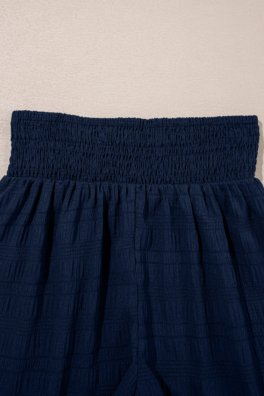 Dirty blue Textured Square Neck Top and Shirred High Waist Shorts Set