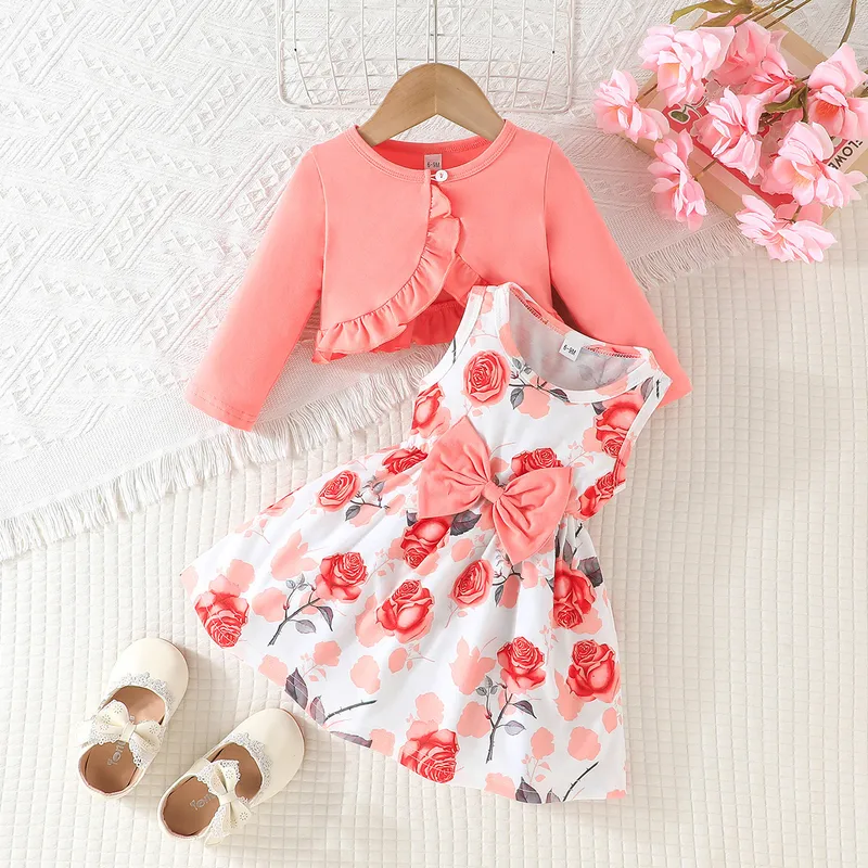 Ditsy Floral Print Shirred Detail Ruffle Trim Dress