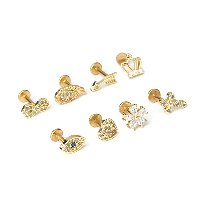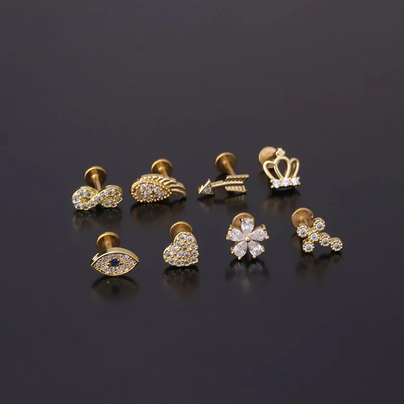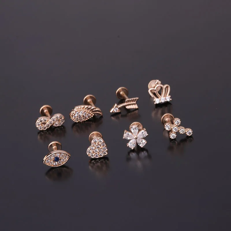 Ear Cartilage Rings & Studs Geometric 316 Stainless Steel Copper Plating