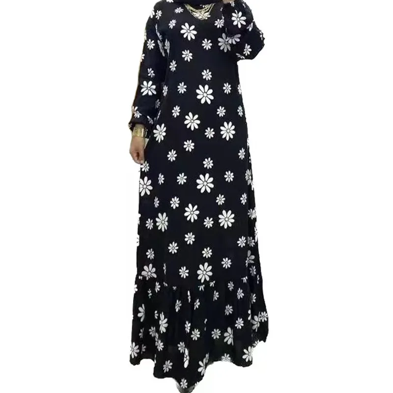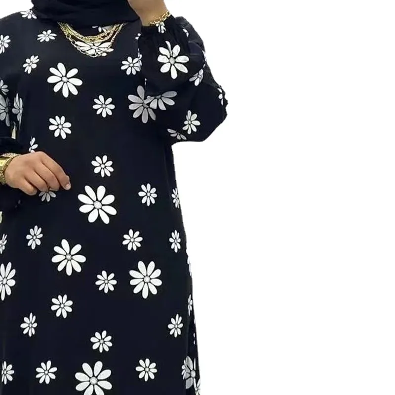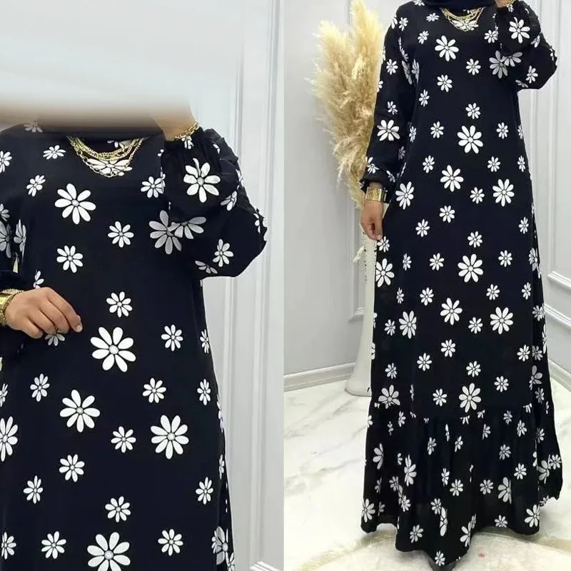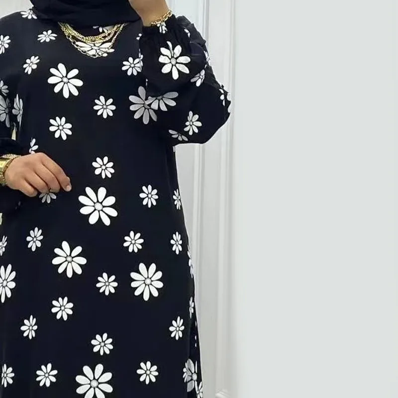 Wholesale European & American New Fashion Loose - Fit Black Floral High - Neck Dress for Women - Trendy Casual Wear