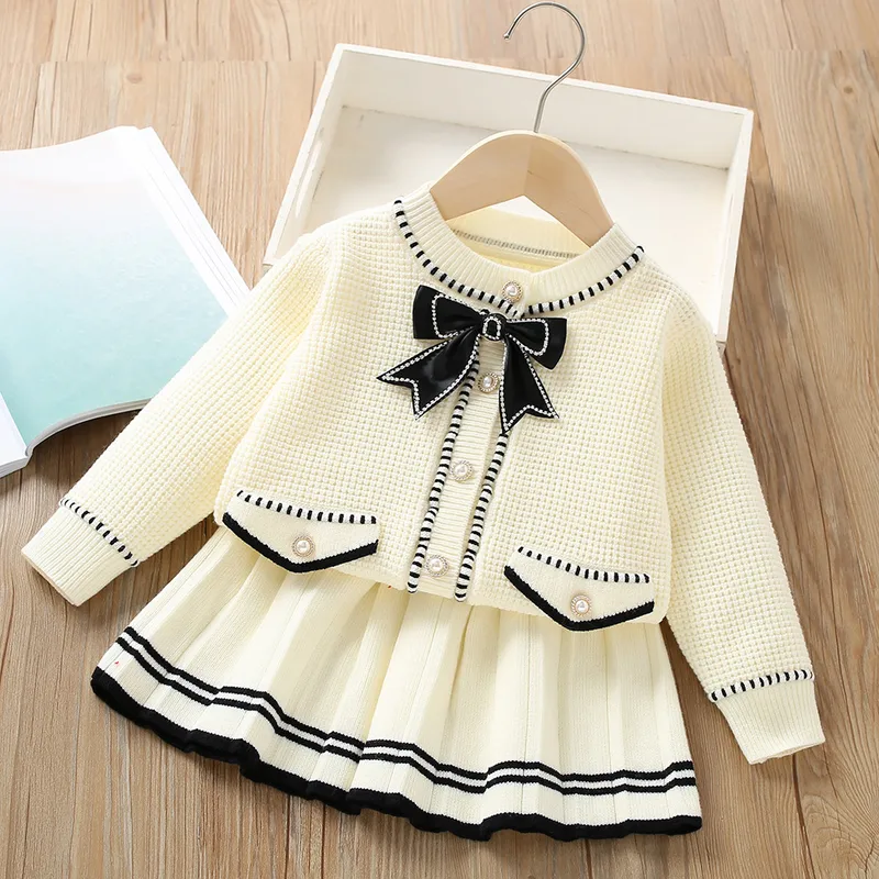 Elegant Cute Bow Knot Polyacrylonitrile Fiber Girls Clothing Sets