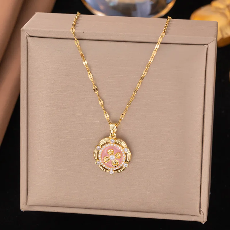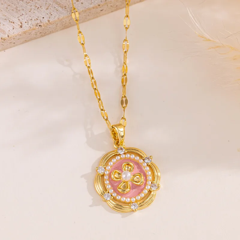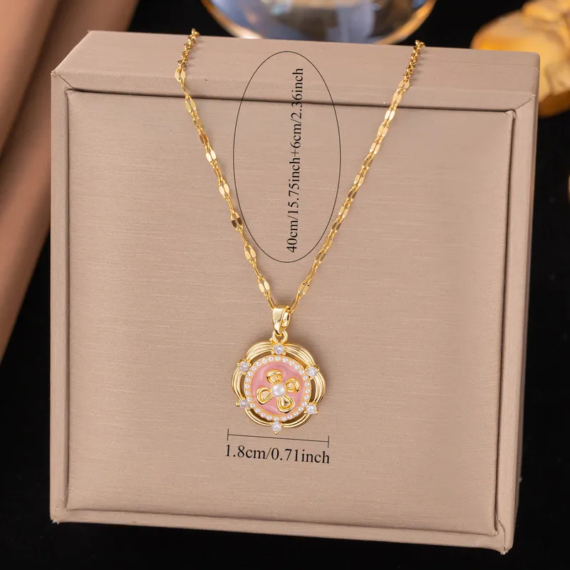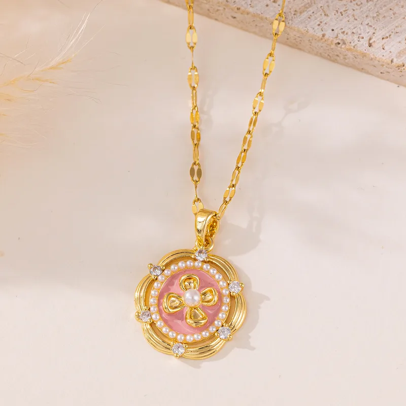 Wholesale Casual Elegant Geometric Round 316 Stainless Steel Copper Women's Pendant Necklace