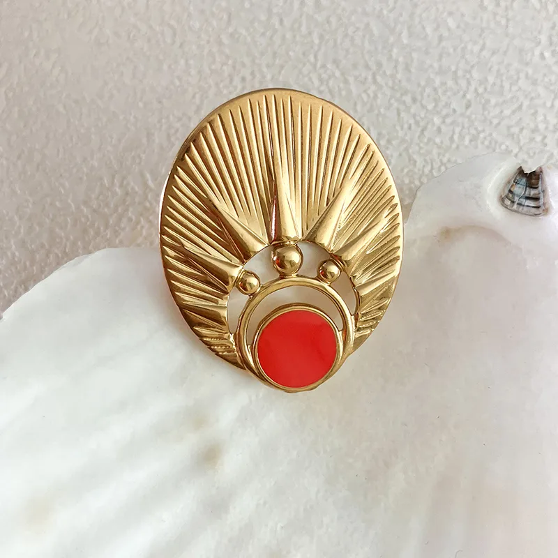 Wholesale Elegant Lady Modern Style Heart Shape Flower 304 Stainless Steel Artificial Pearl Enamel Plating Inlay Natural Stone 14K Gold Plated Women's Rings Necklace