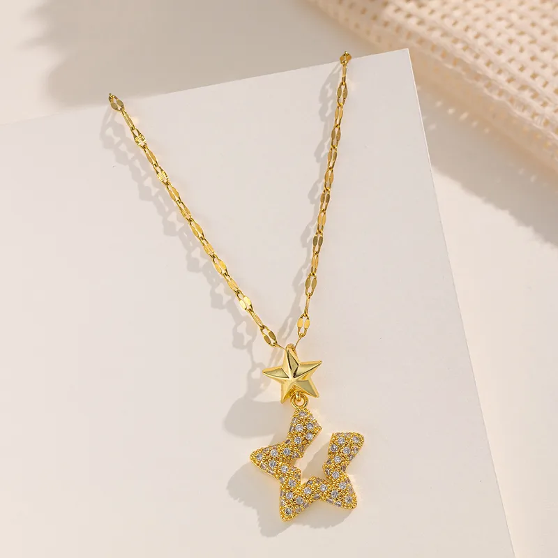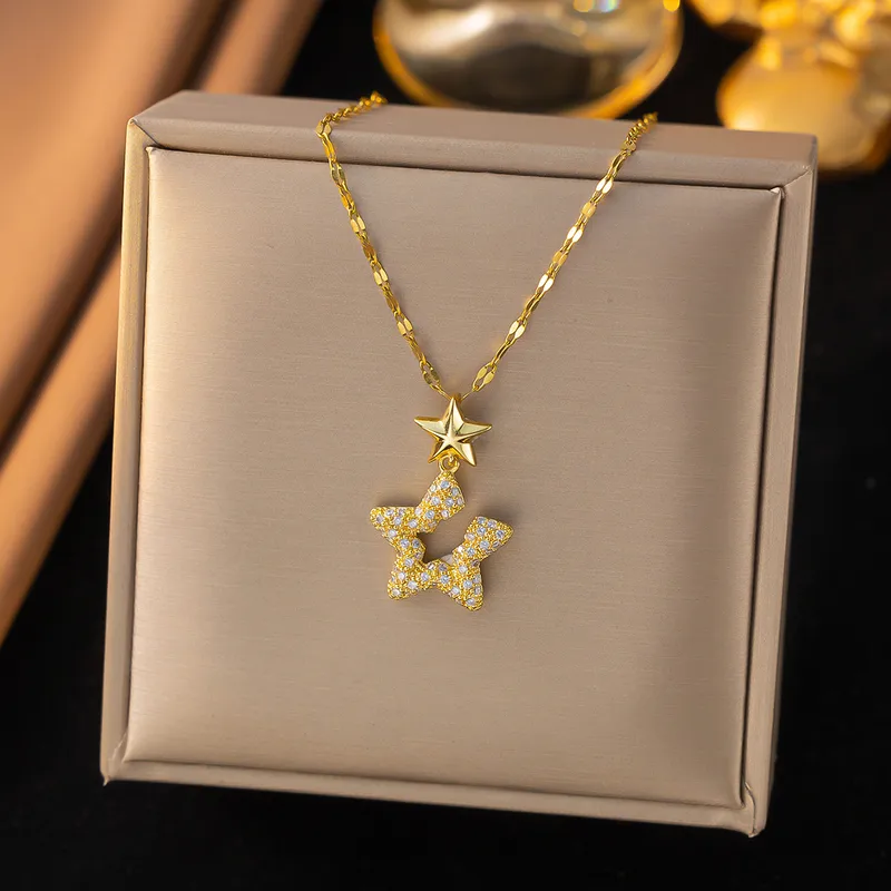 Wholesale Elegant Pentagram 316 Stainless Steel Copper Women's Pendant Necklace