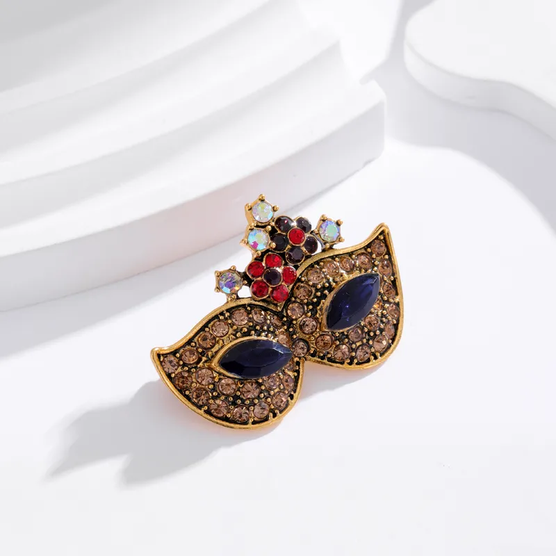 Elegant Retro Tree Heart Shape Mask Alloy Rhinestones Unisex Brooches