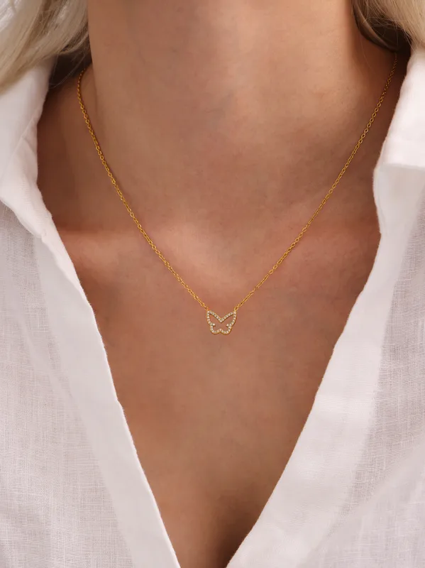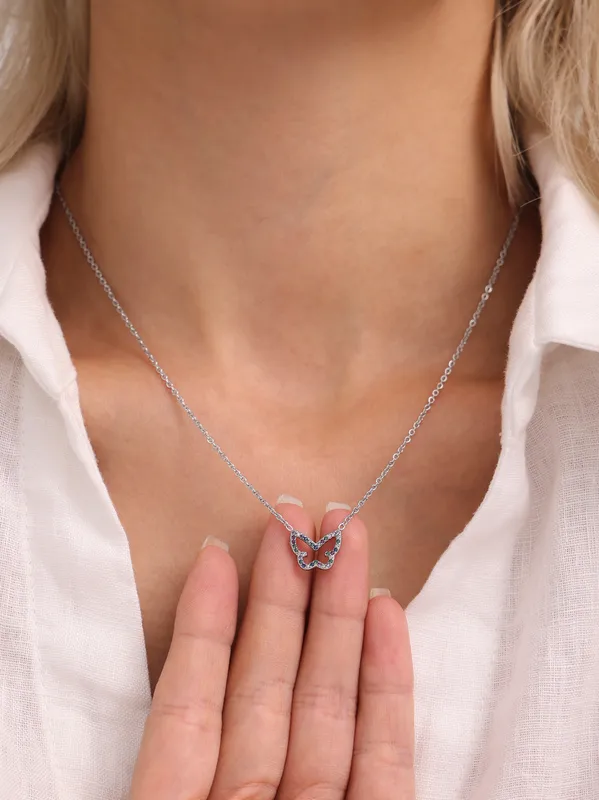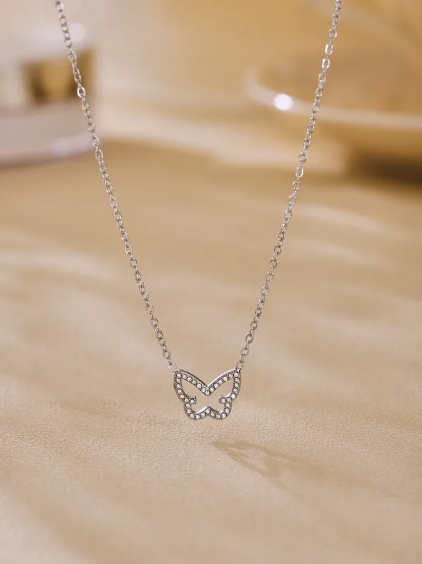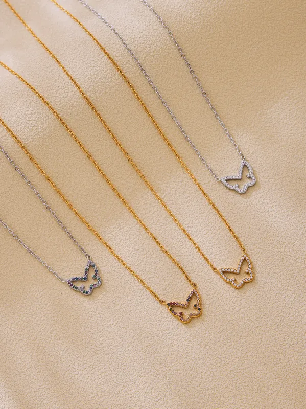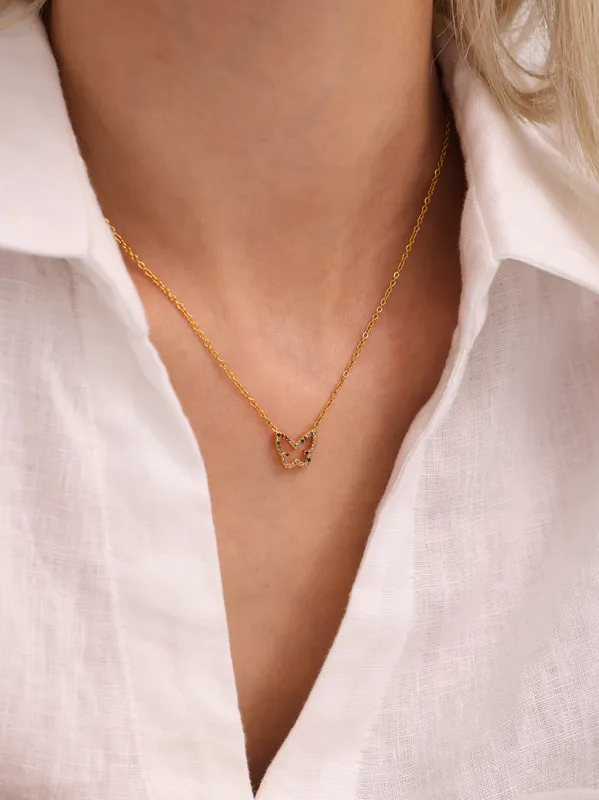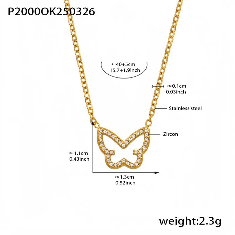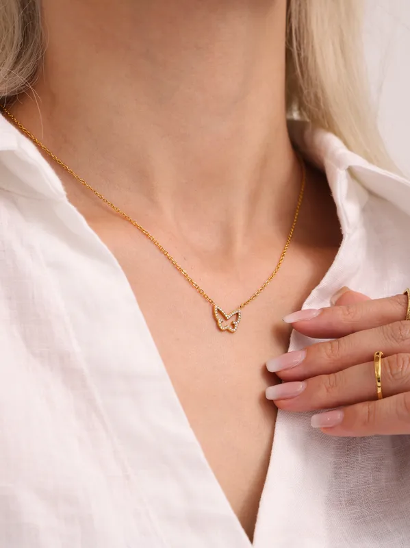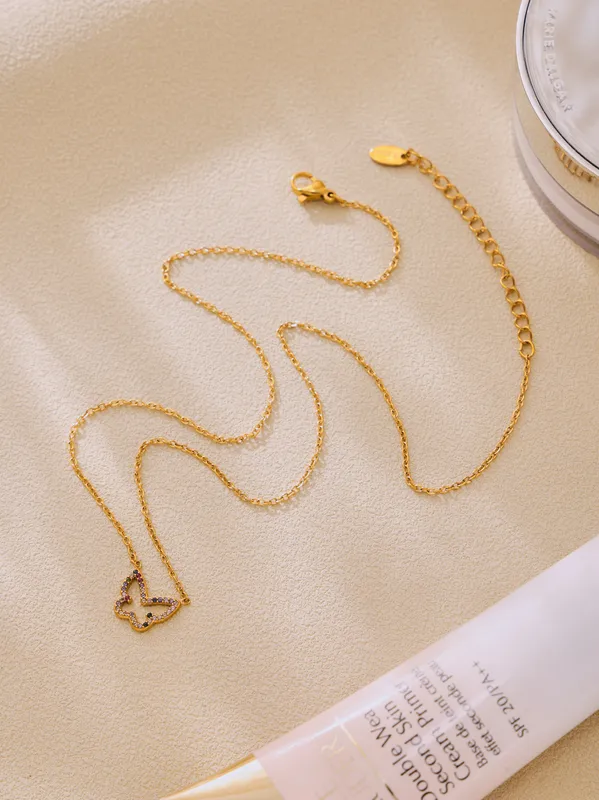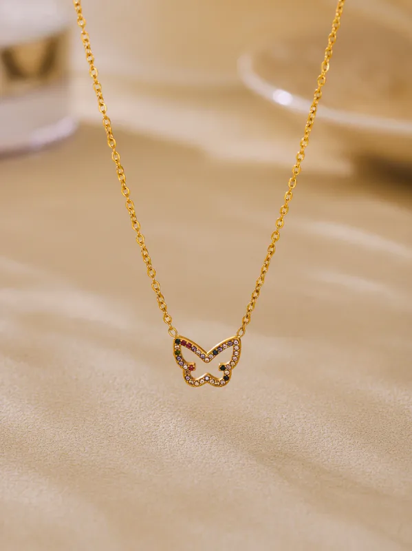 Wholesale Elegant Shiny Butterfly 304 Stainless Steel Plating Zircon 18K Gold Plated Women's Necklace