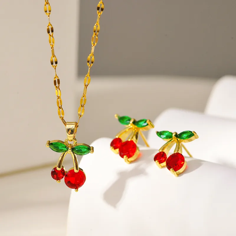 Elegant Simple Style Classic Style Cherry Titanium Steel Copper Women's Jewelry Set