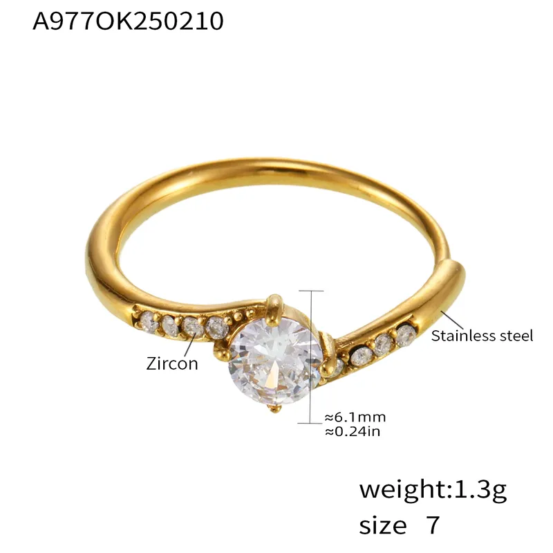 Wholesale Elegant Simple Style Shiny Geometric 304 Stainless Steel Plating Inlay Zircon 18K Gold Plated Women's Rings