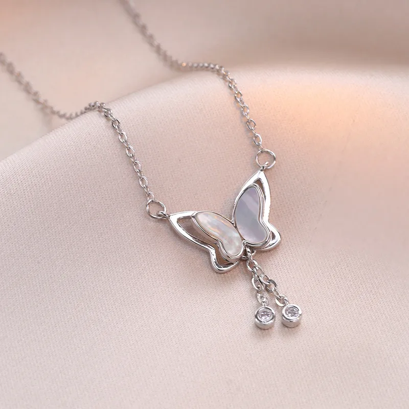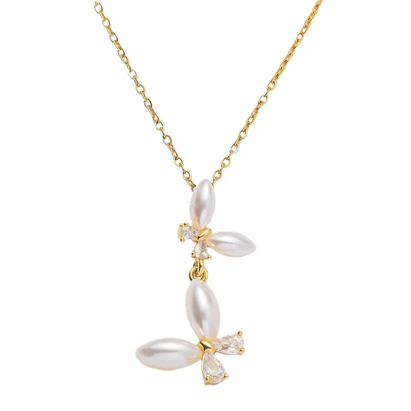 Wholesale Elegant Simple Style Heart Shape Butterfly Bow Knot Titanium Steel Copper Zircon Women's Pendant Necklace
