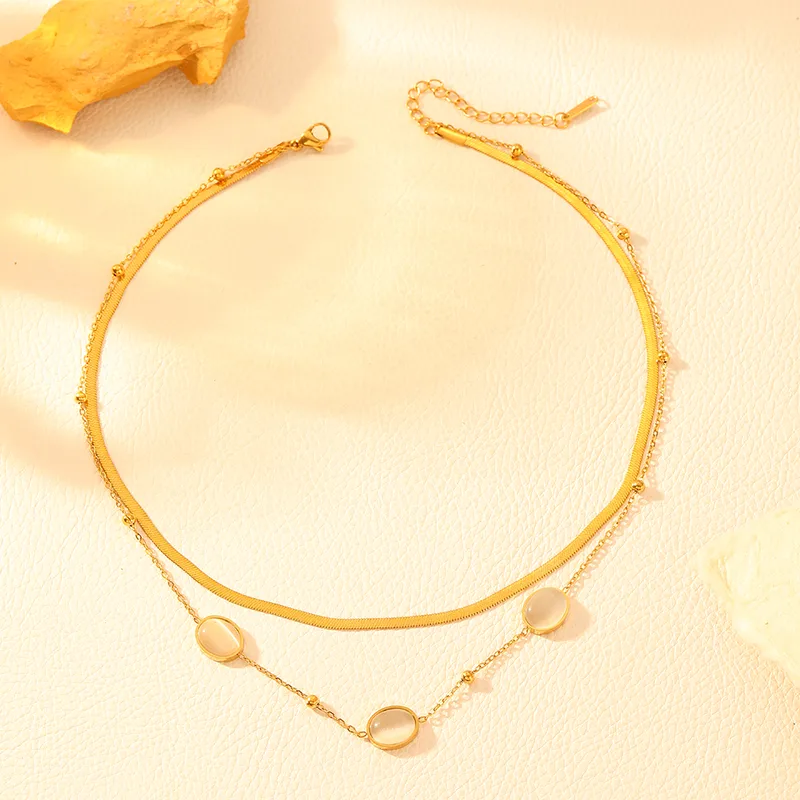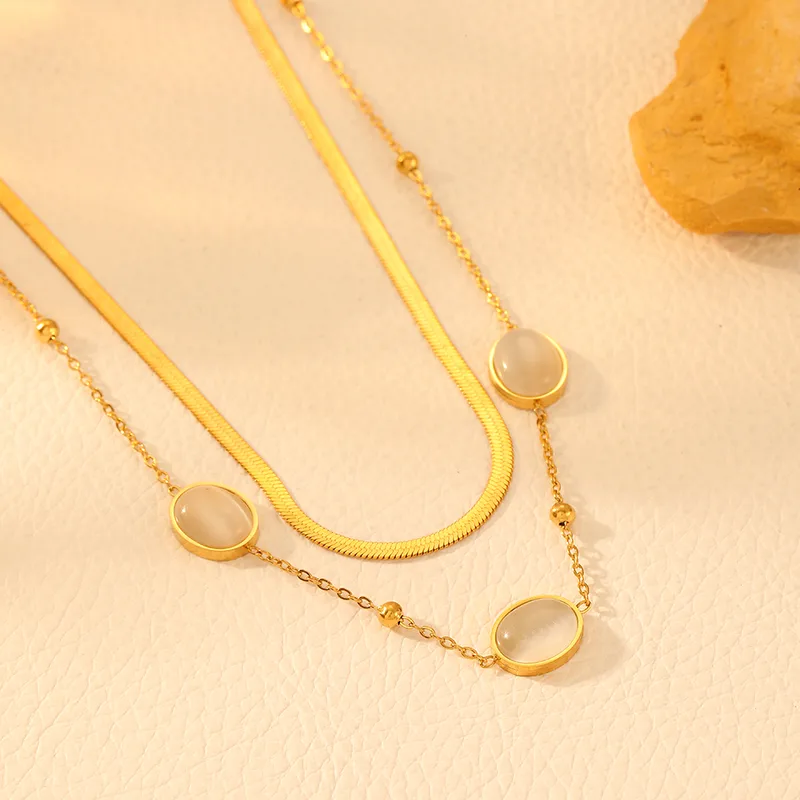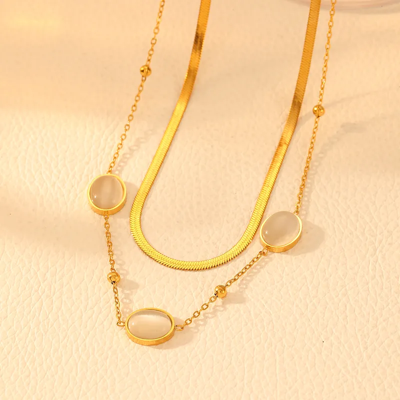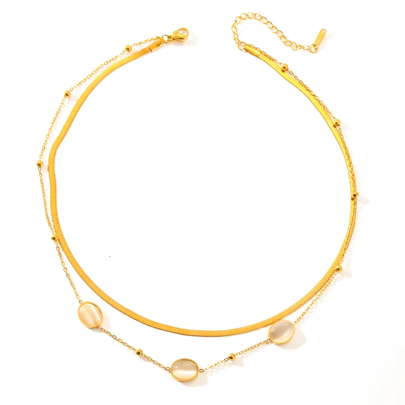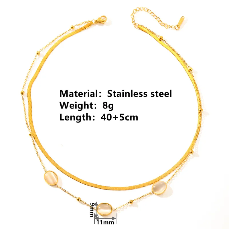 Wholesale Elegant Simple Style Oval 304 Stainless Steel Inlay Opal Zircon 18K Gold Plated Women's Double Layer Necklaces