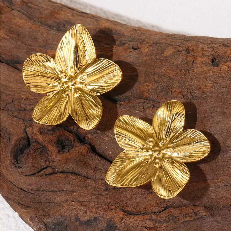 Wholesale Elegant Streetwear Flower 304 Stainless Steel 18K Gold Plated Imitation Gold Women's Earrings Necklace Jewelry Set
