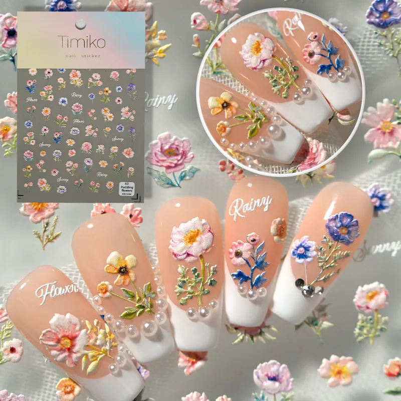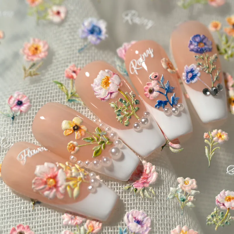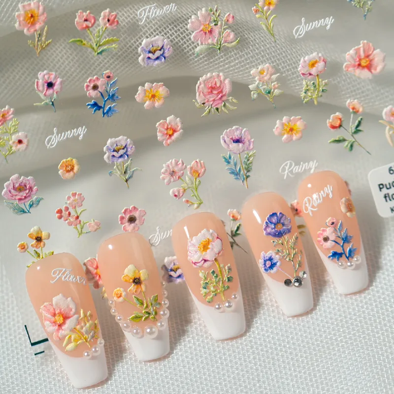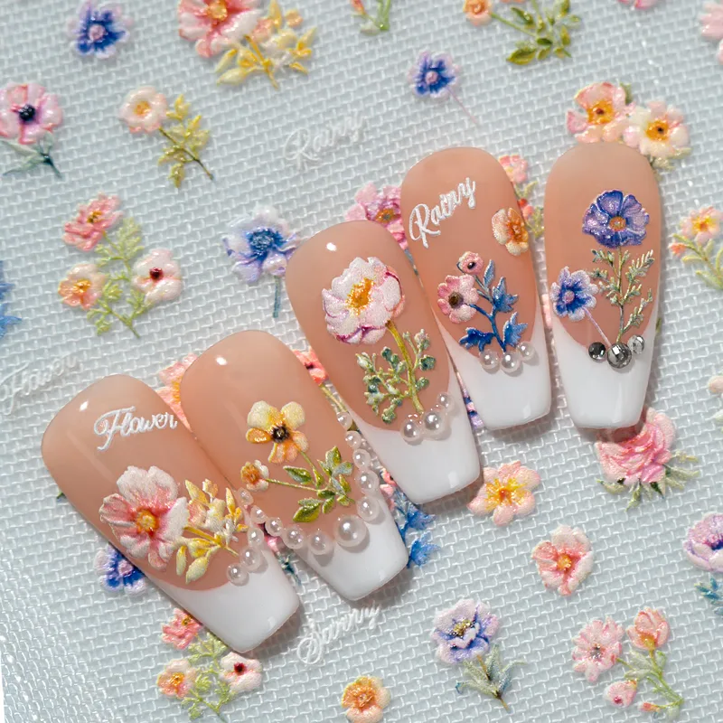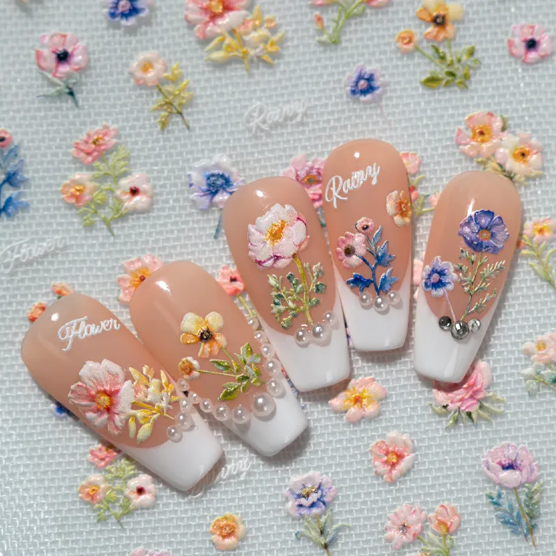 Wholesale Elegant Sweet 3D Print Flower Petal Nail Stickers Nail Decoration Accessories