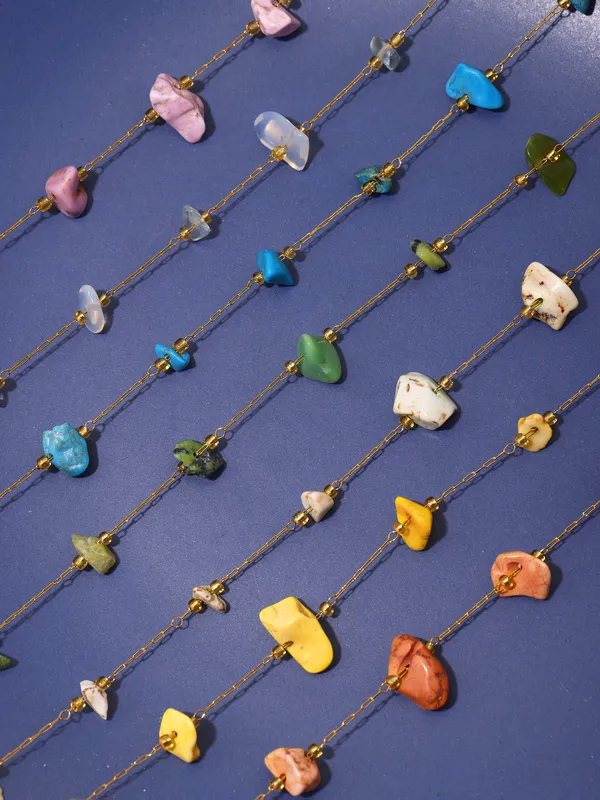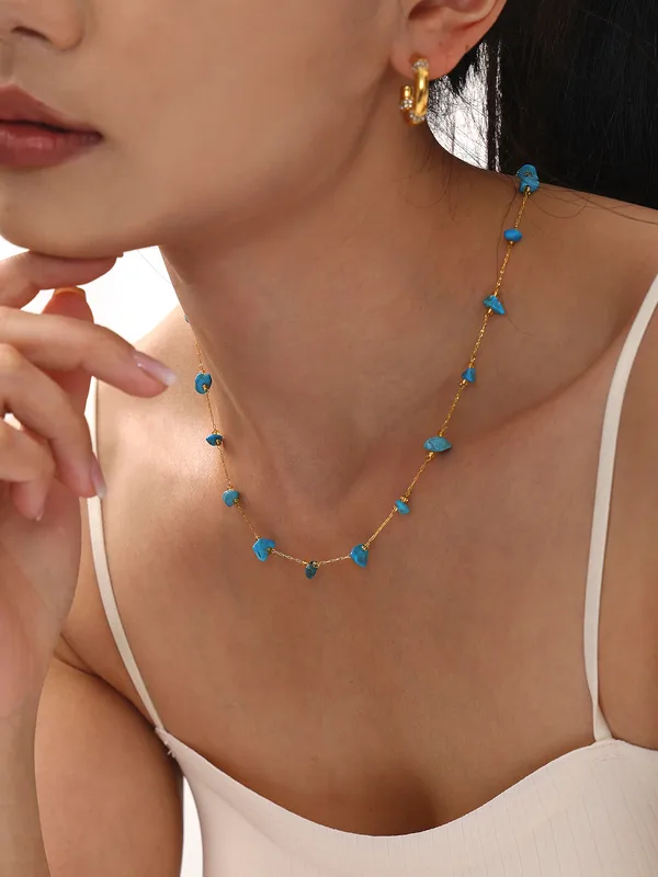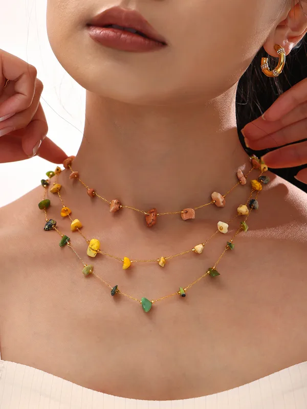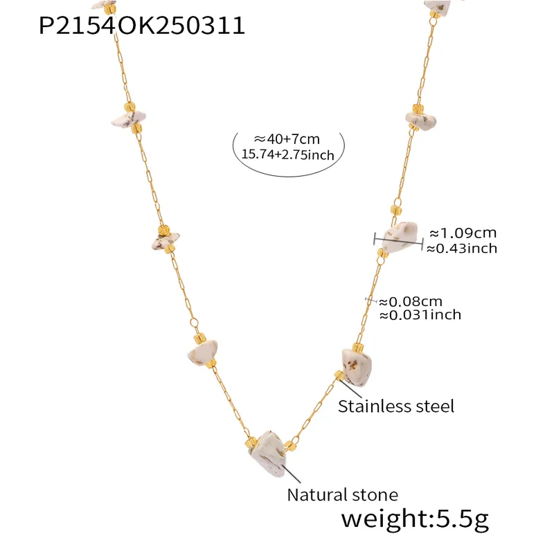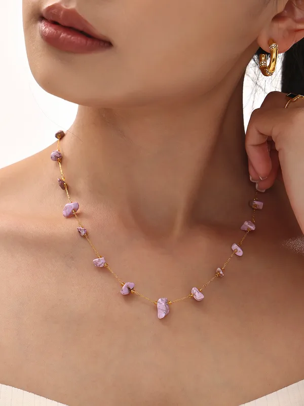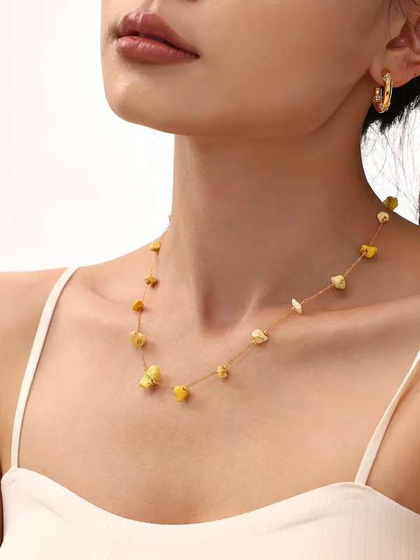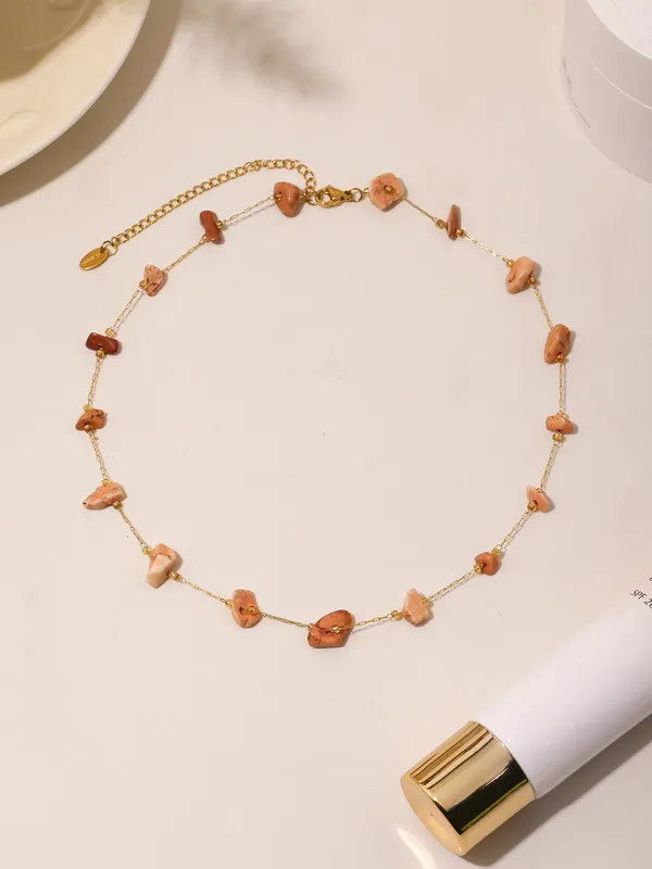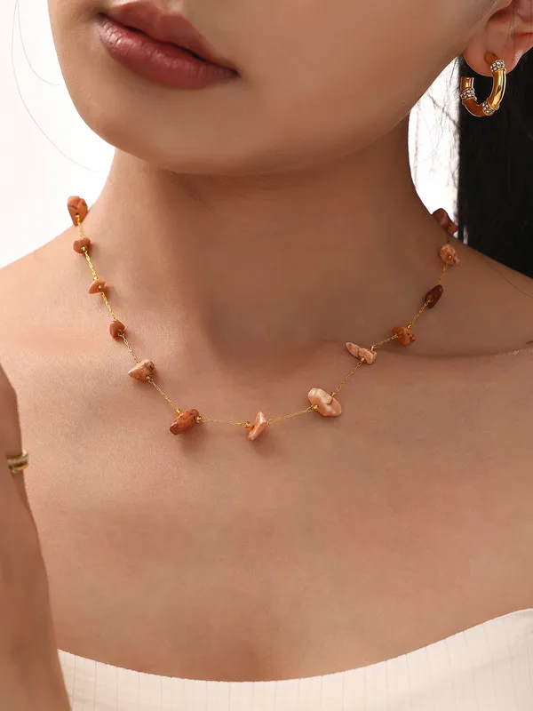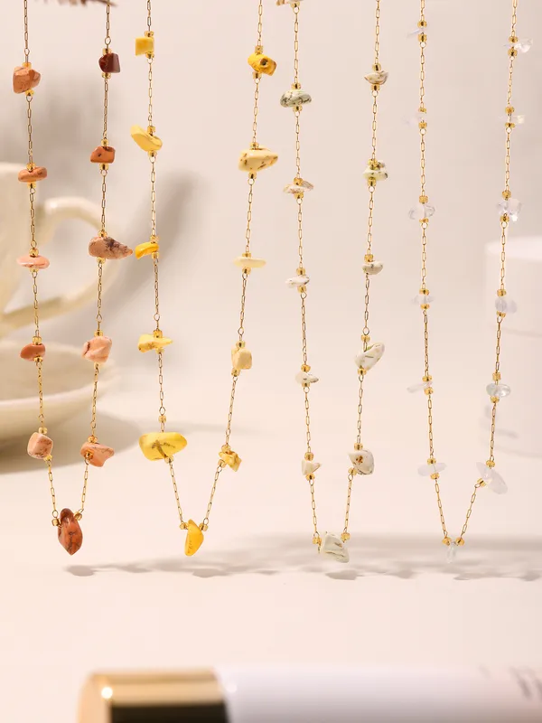 Wholesale Elegant Sweet Pastoral chain natural stone Titanium Steel Beaded Plating 18K Gold Plated Women's Necklace