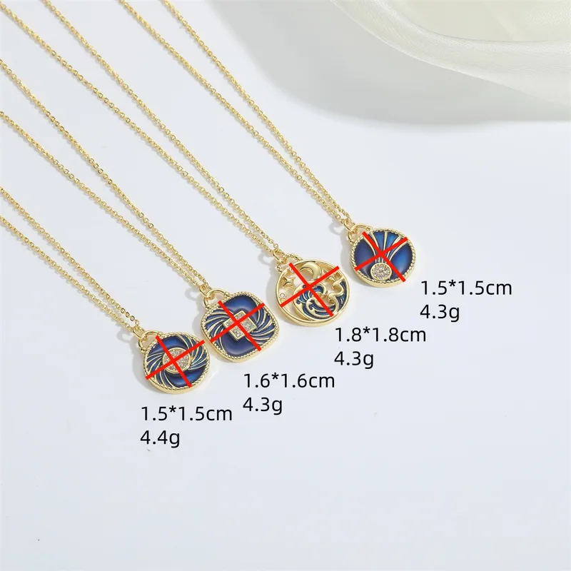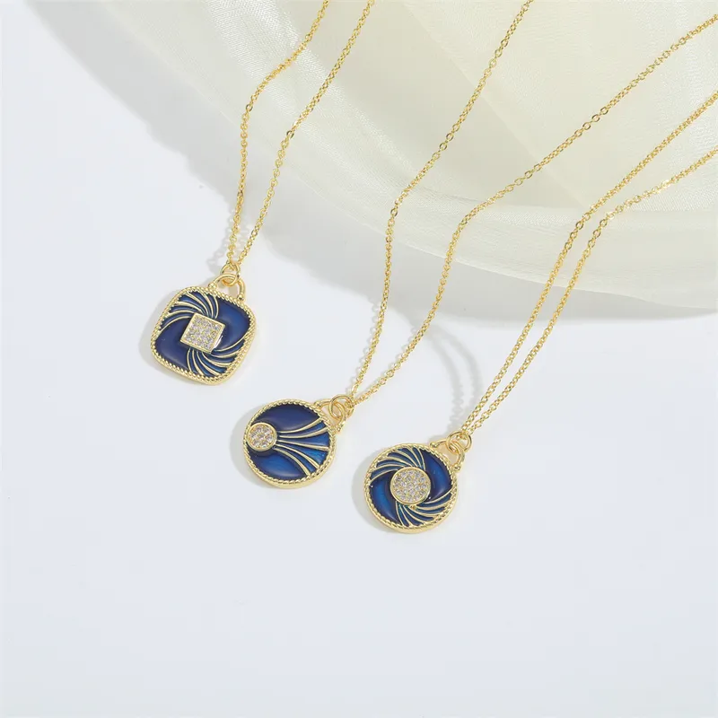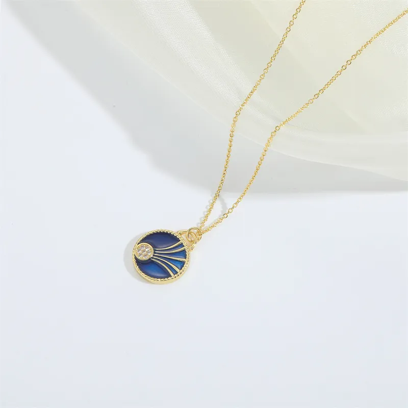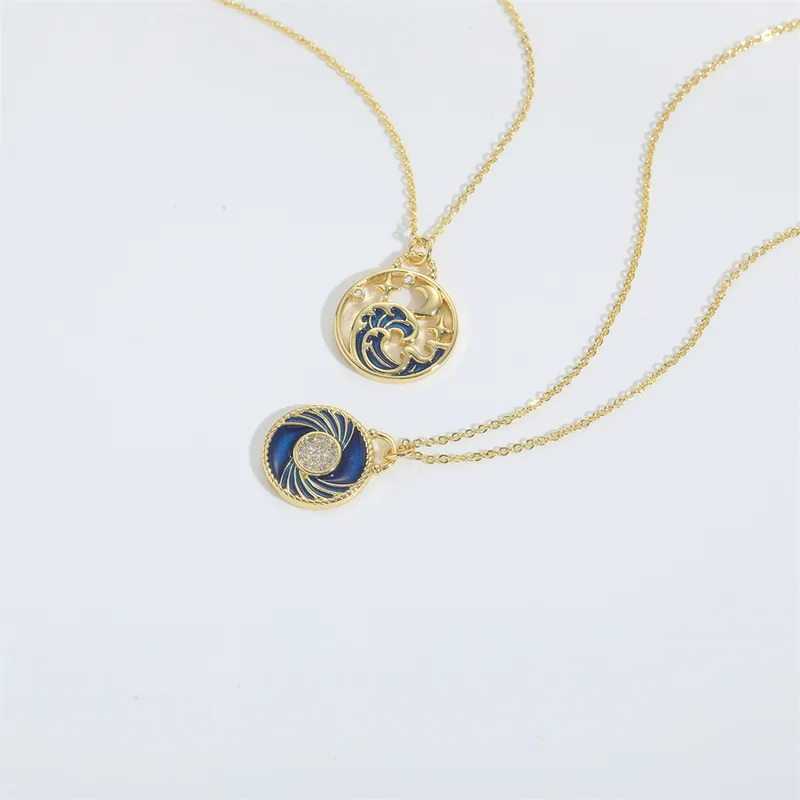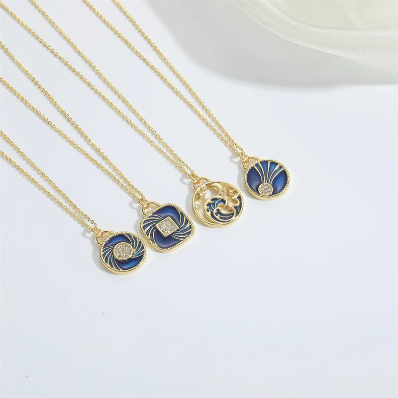 Wholesale Elegant Vacation Sea Wave Copper Enamel Zircon 14K Gold Plated Women's Pendant Necklace