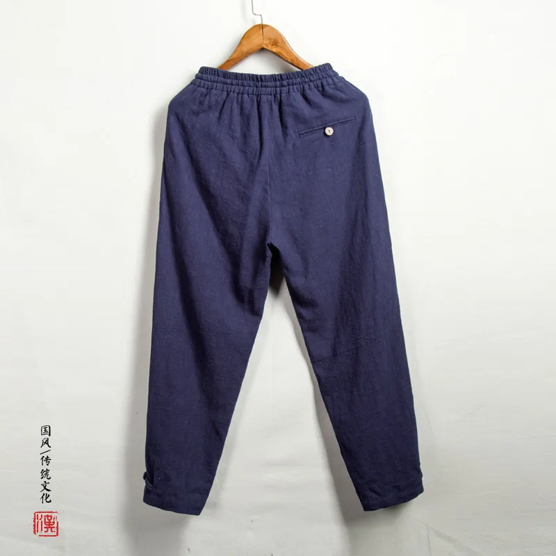 English Title: Chinese Style Linen Trousers For Men - Vintage Loose Fit Tapered Pants, Autumn Winter Casual Hemp Pants