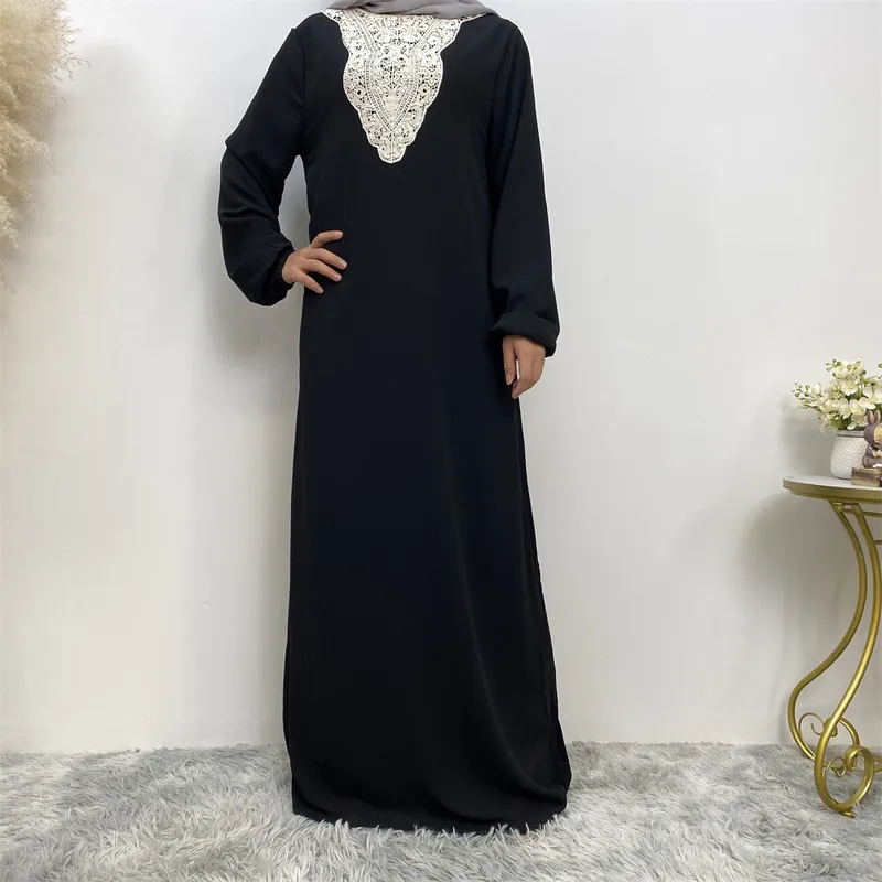 Wholesale English Title: Elegant Muslim Abaya Dress with Embroidered Front