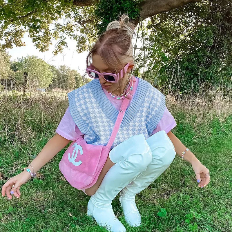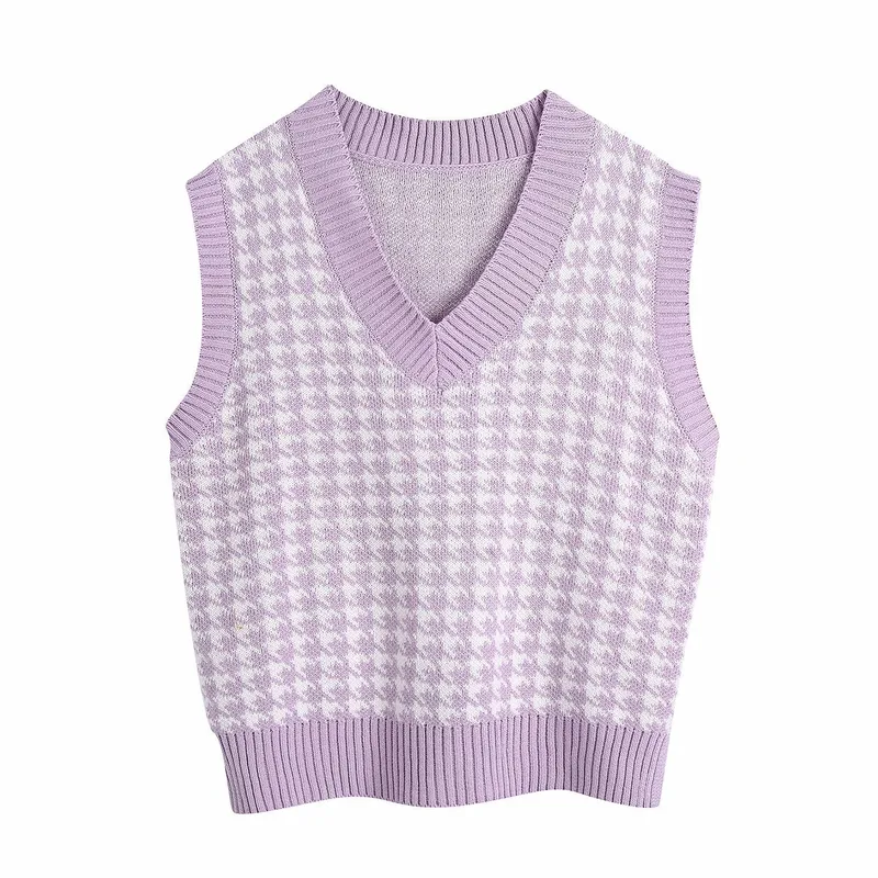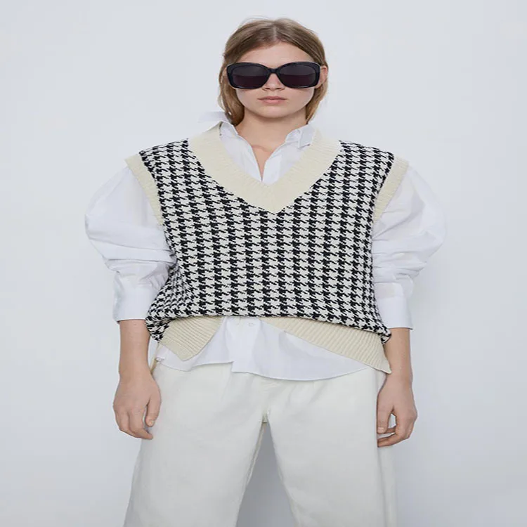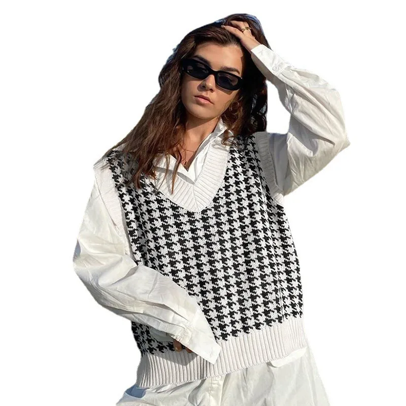 Europe And The United States Autumn And Winter New Sexy Women's Houndstooth Sweater Loose Sleeveless Vest Top Sweater