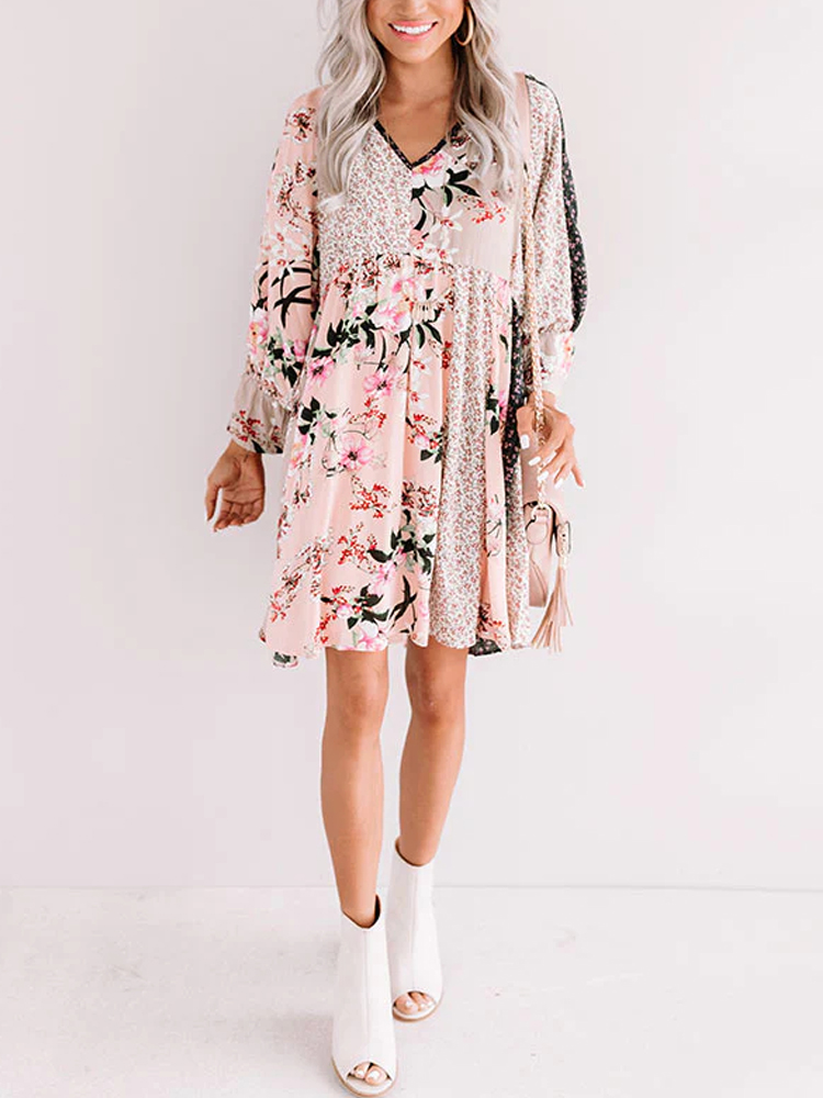 Wholesale Europe and the United States autumn and winter new women's personalized contrast color slim puffy skirt waist slim long sleeve dress