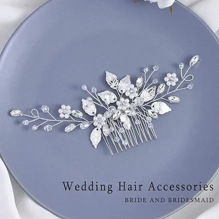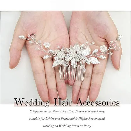 Europe And The United States Silver Leaf Alloy Pearl Handmade Hair Comb Wedding Bride Headdress