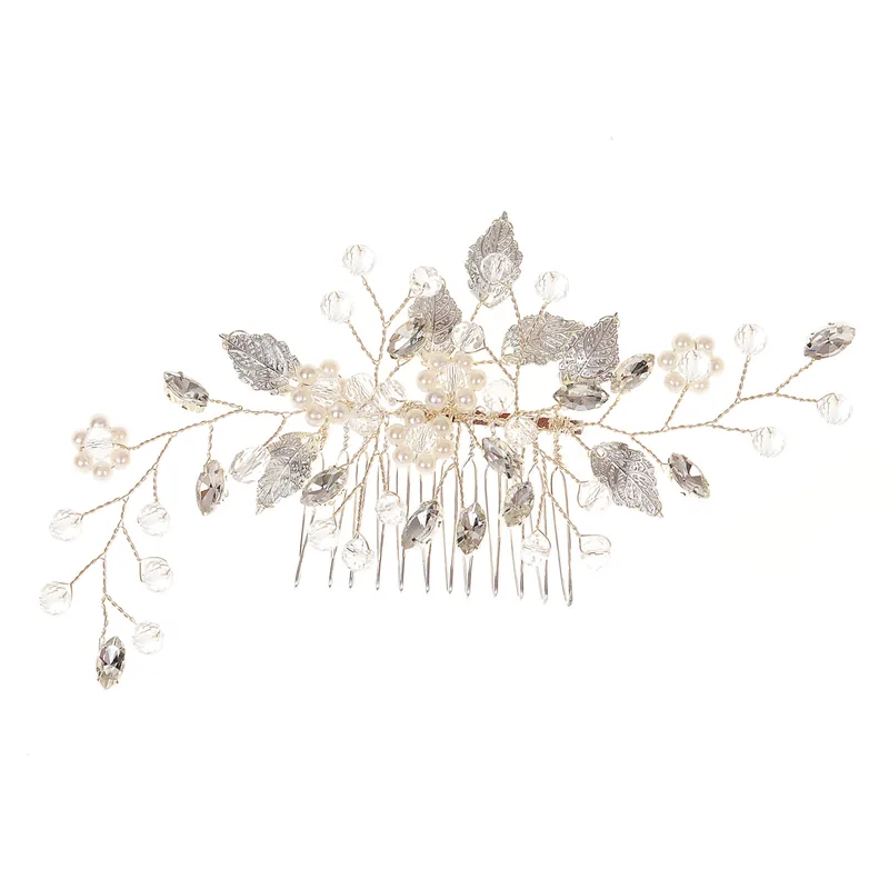 Wholesale Europe and the United States silver leaf alloy pearl handmade hair comb wedding bride headdress