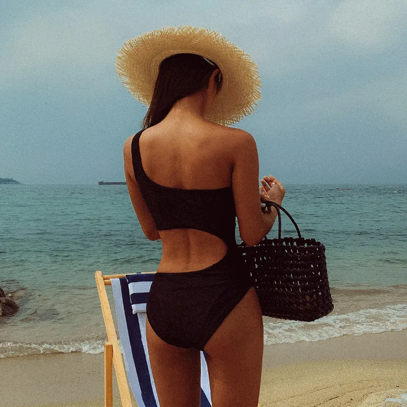 European And American Style Sexy Hollow Open Back Solid Color One-piece Swimsuit