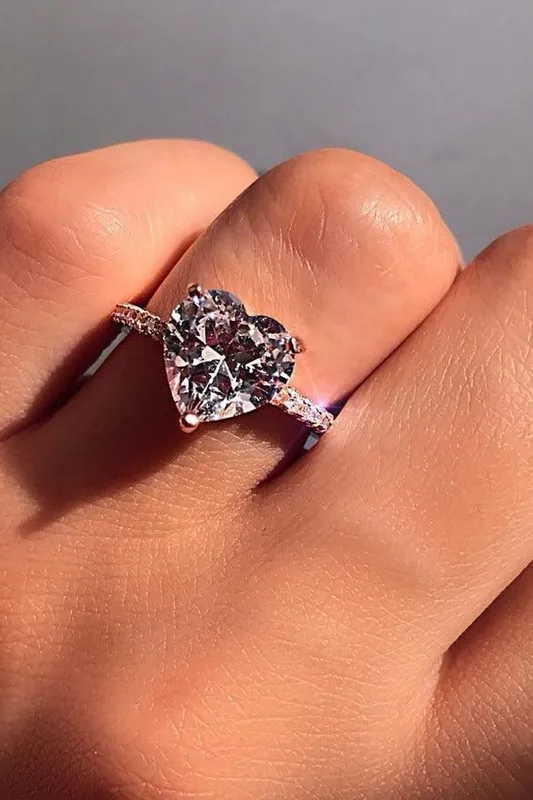Fashion Alloy Inlaid Aaa Zircon Heart-shaped Engagement Party Ring