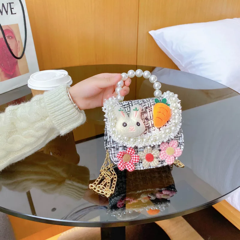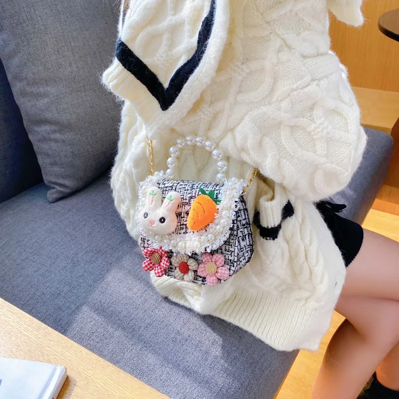 Fashion Children's Bag Cute Flower Baby Girl Coin Purse Cotton Linen Cartoon Bunny Children's Crossbody Bag
