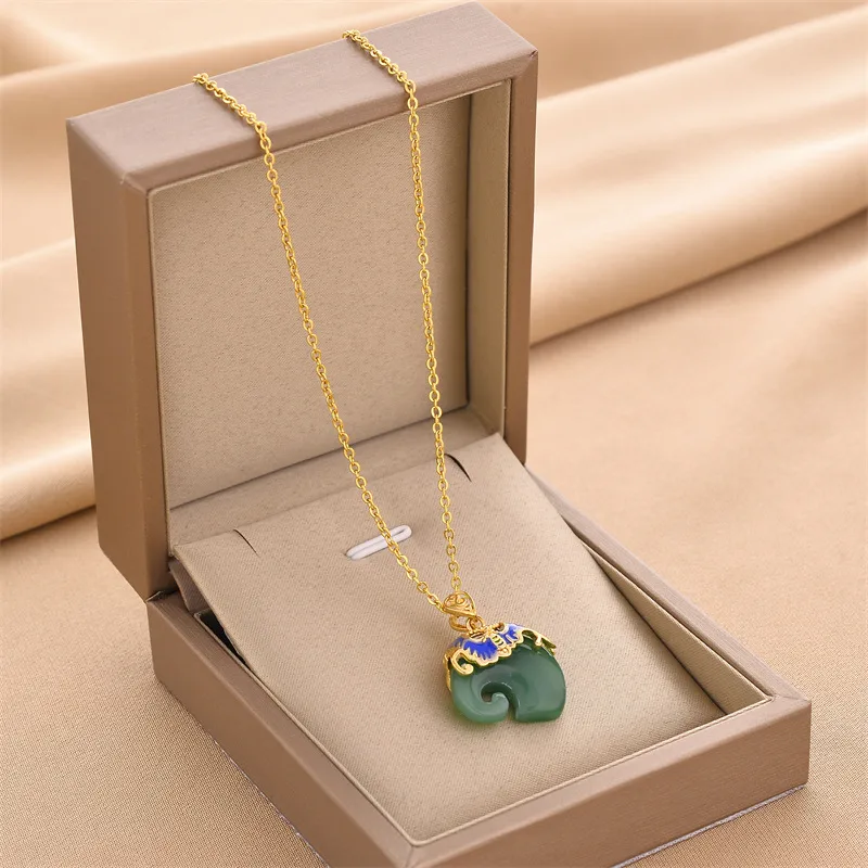 Wholesale fashion elephant titanium steel plating inlay zircon pendant necklace 1 piece
