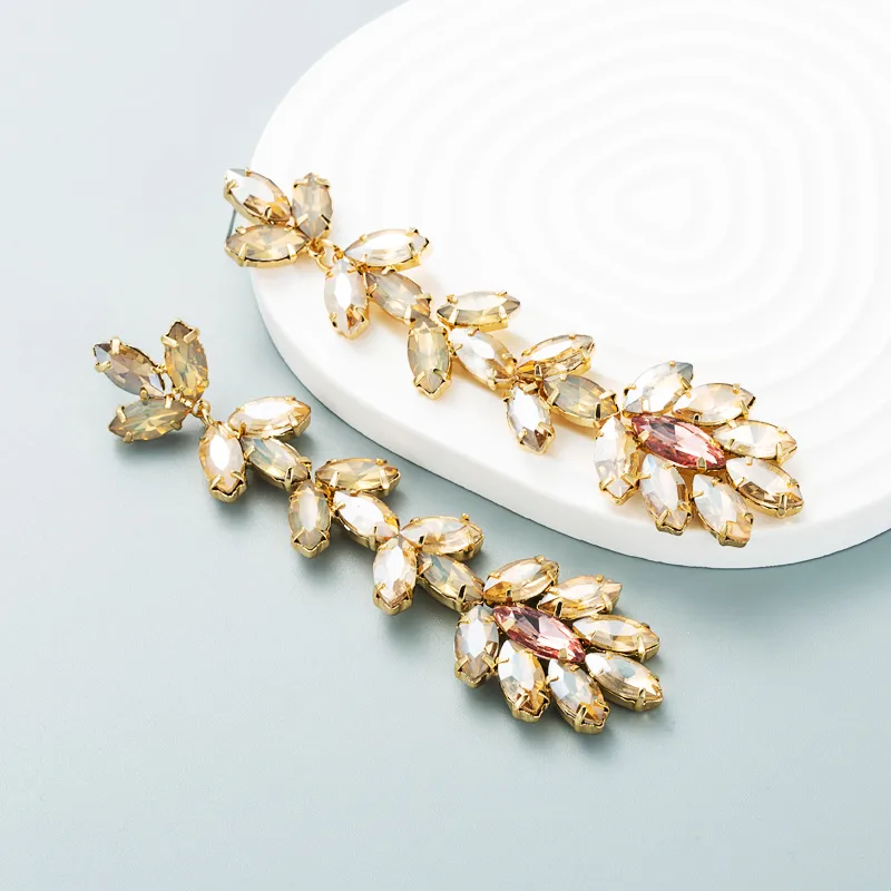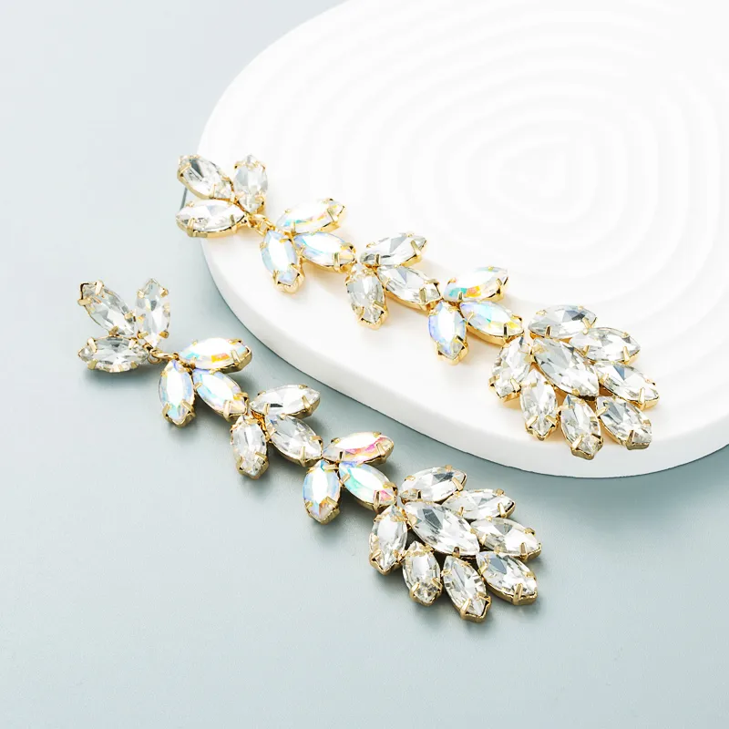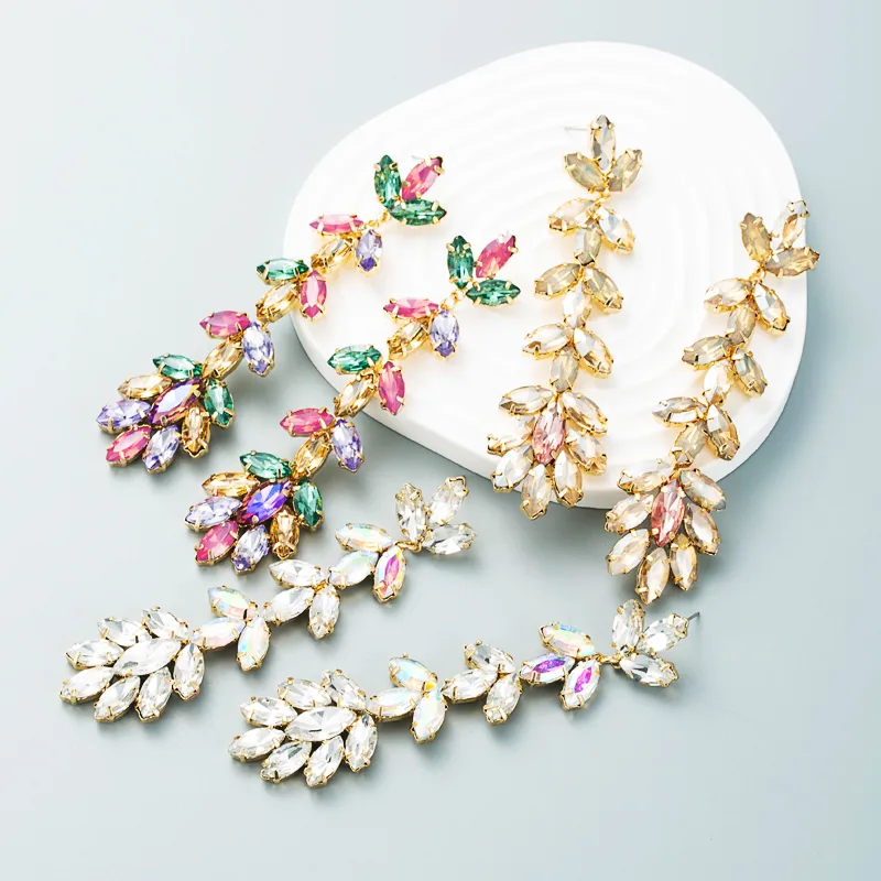 Fashion Exaggerated Alloy Diamond-studded Flower Long Earrings Female Wholesale