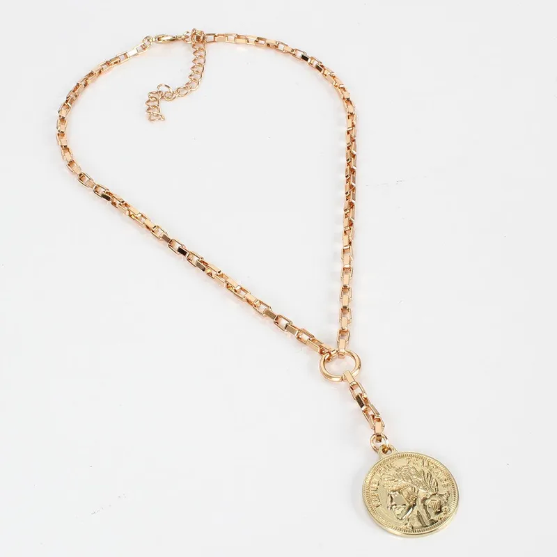 Wholesale wild metal portrait coin pendant necklace female nhct177382