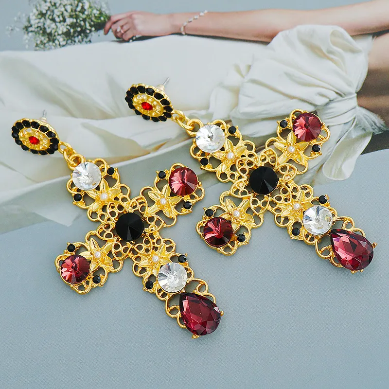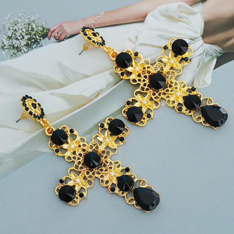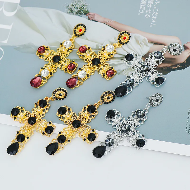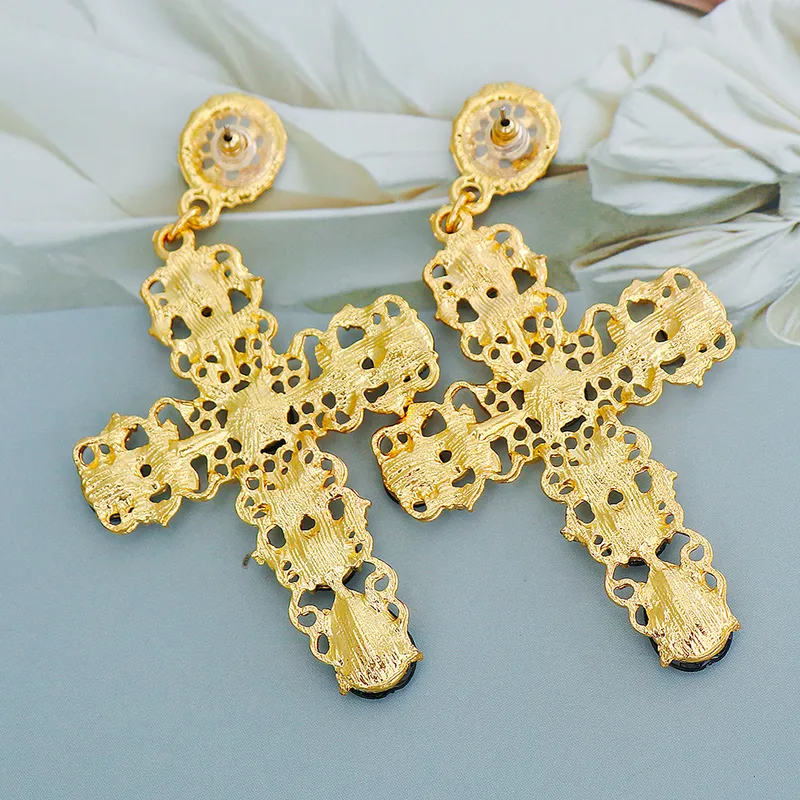 Wholesale bohemian earrings retro punk hollow alloy diamond cross earrings accessories wholesale nhjj448551