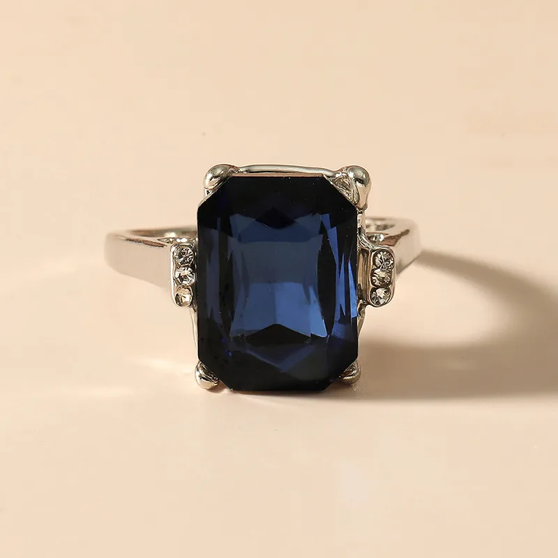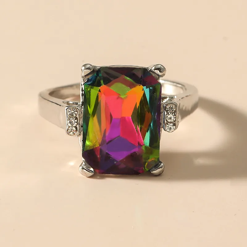 Fashion Geometric Square Colorful Sapphire Crystal Alloy Ring