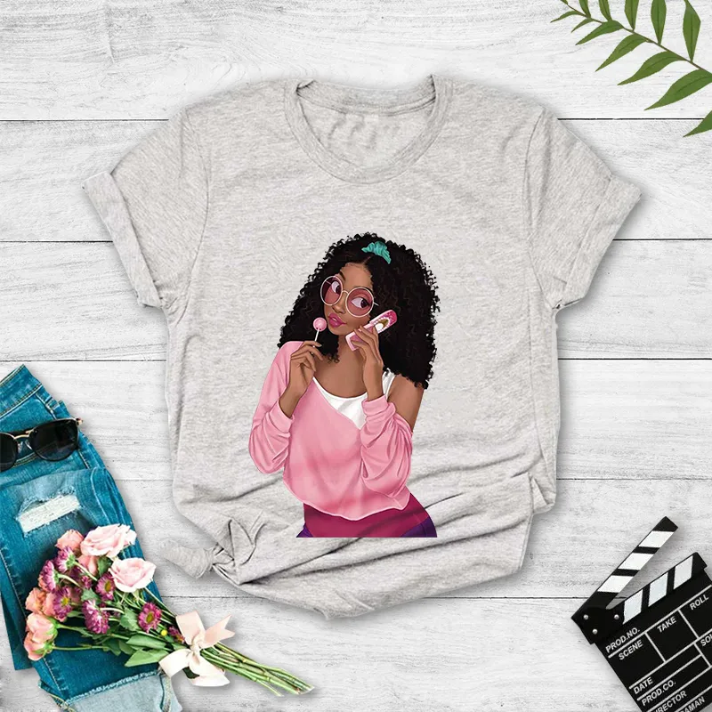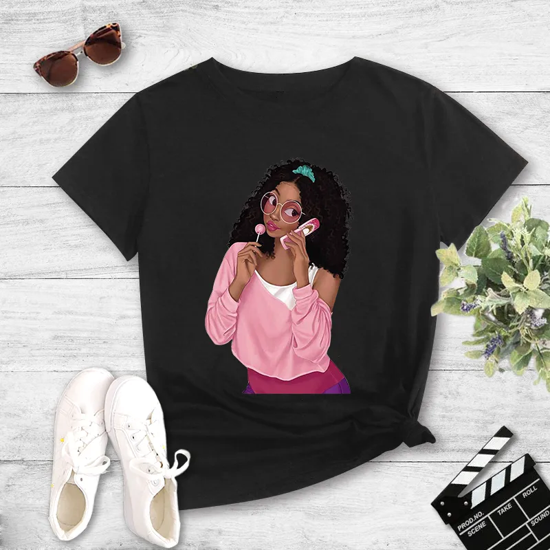 Fashion Girl Print Casual Short-sleeved T-shirt Women