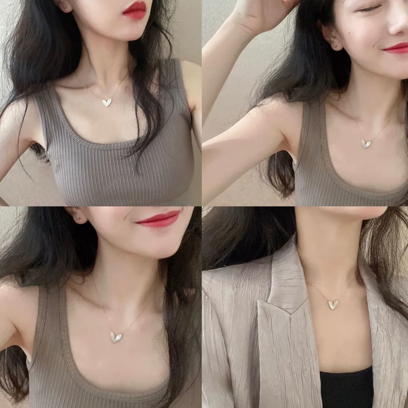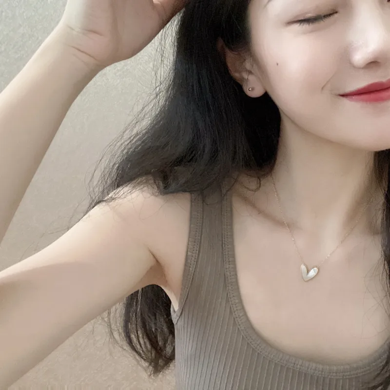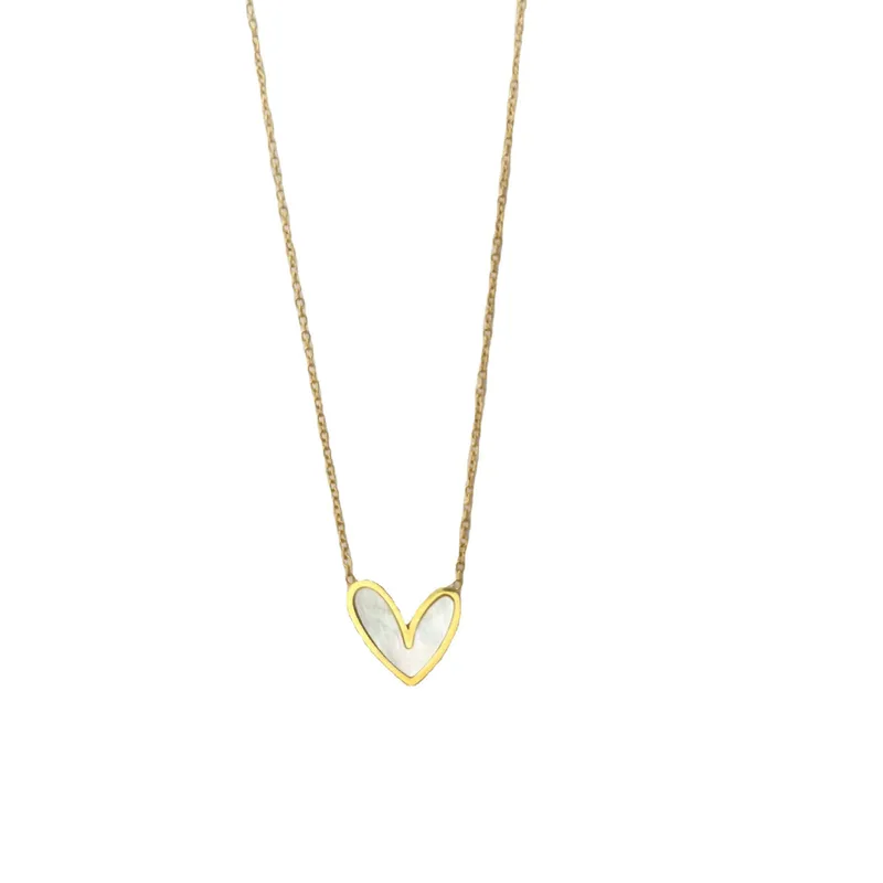 Wholesale fashion heart shape titanium steel inlay shell pendant necklace 1 piece