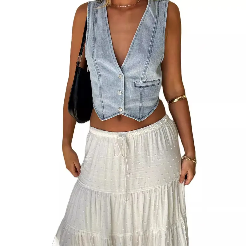 Fashion Leisure V-Neck Denim Vest Women