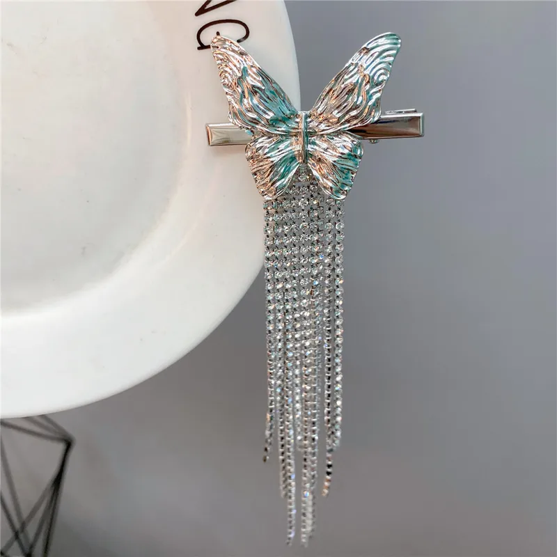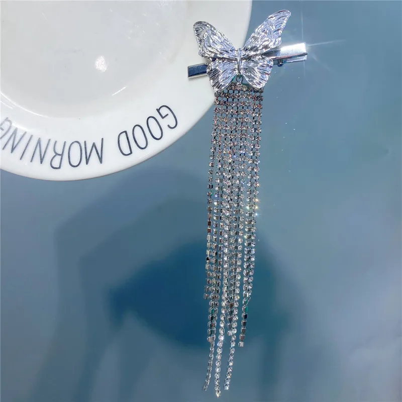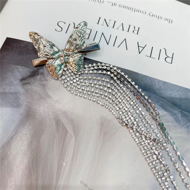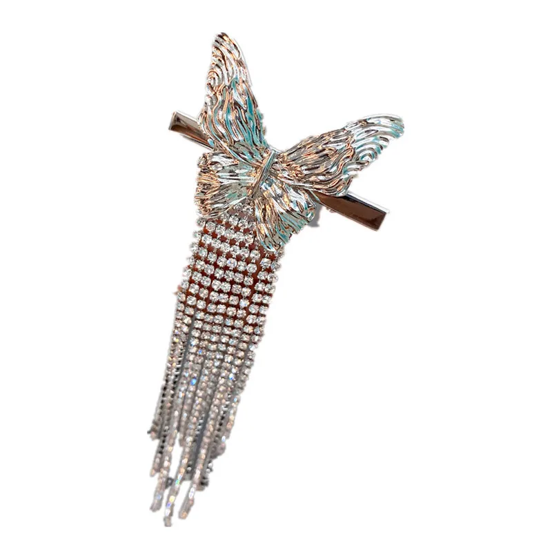 Fashion Metal Butterfly Full Drill Long Tassel Hairpin Hair Accessories