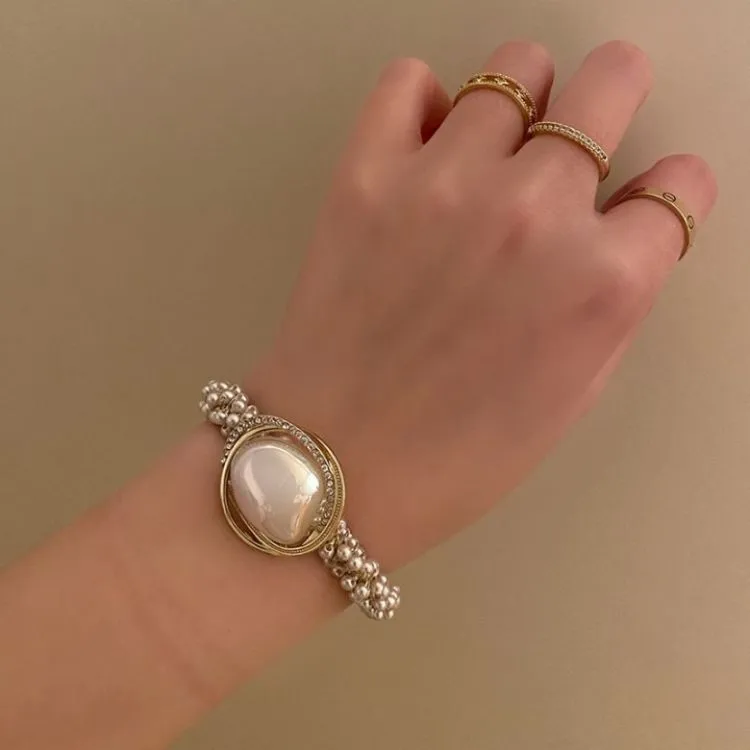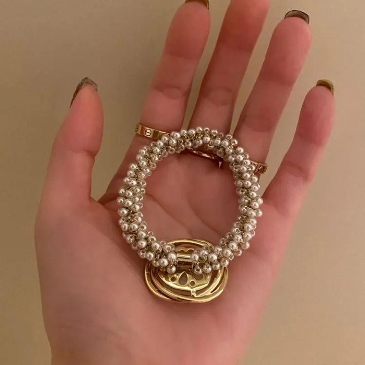 Fashion Oval Imitation Pearl Rhinestone Hair Tie 1 Piece