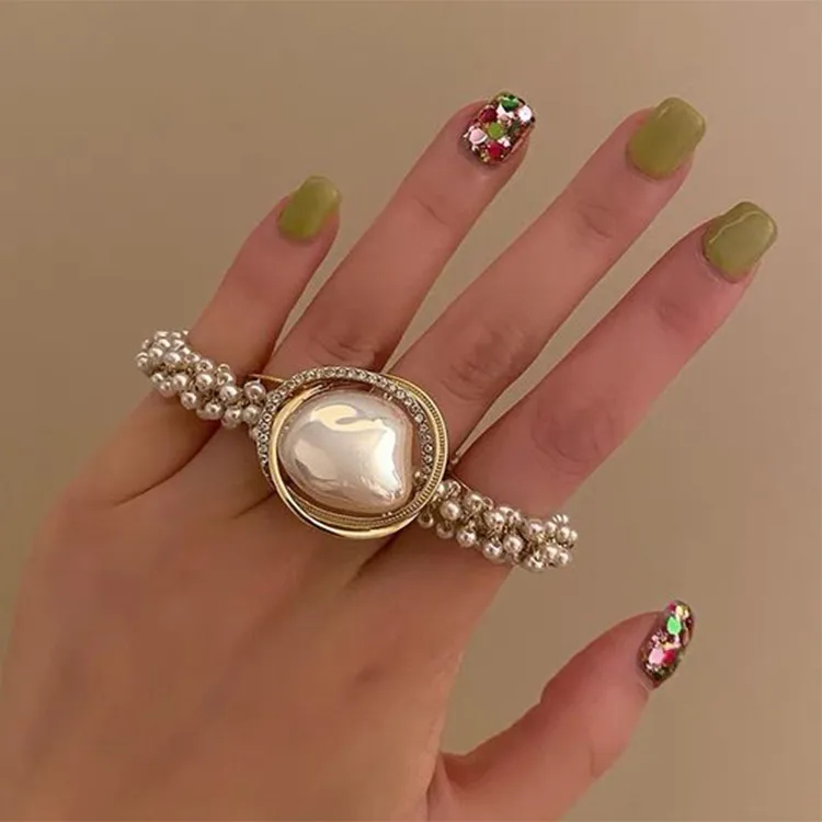 Wholesale fashion oval imitation pearl rhinestone hair tie 1 piece