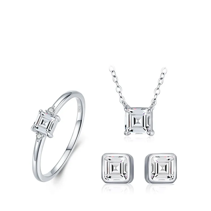Fashion S925 Sterling Silver Diamond Necklace Earrings Ring