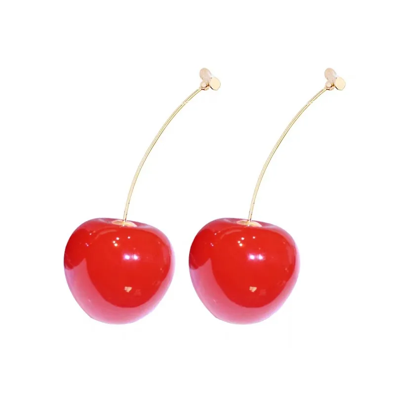 Wholesale fashion sweet cherry fruit synthetic resin alloy fruit resin women's earrings 1 pair