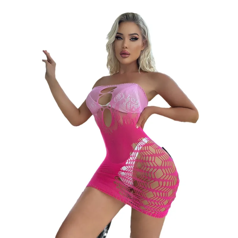 Wholesale Fashion Temptation Hollow Out Gradient Pink Tube dress Lingerie Women's Sexy Hip Skirt Lingerie